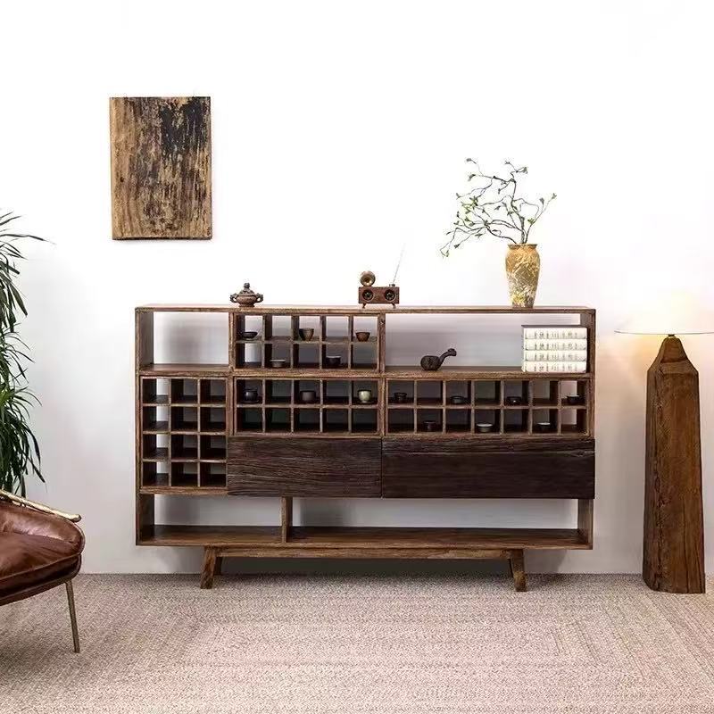 侘寂风博古架实木玄关柜风化木餐边柜储物柜复古民宿茶室收纳柜一