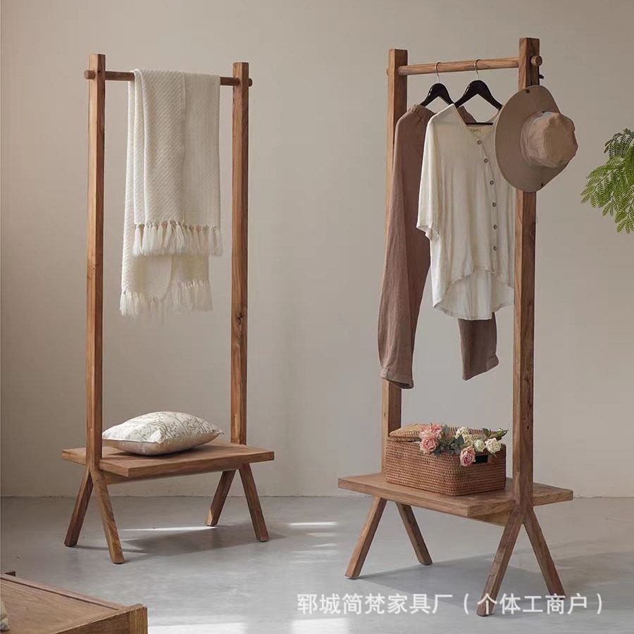 家庭用無垢材衣類ラック、ベランダ物干しハンガー、古材木製フロアスタンド収納ラック、コートやバックパック用ハンガー