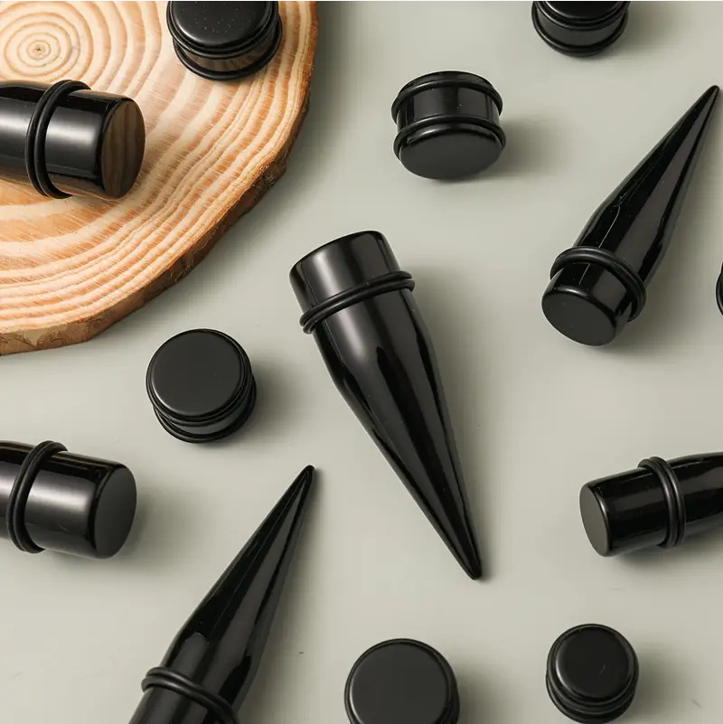 クロスボーダーブラック大型尖ったコーン耳拡張高品質アクリル UV セグメント円筒耳拡張ピアスジュエリー卸売