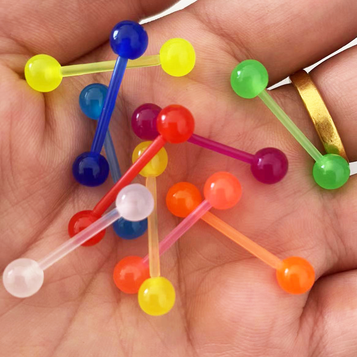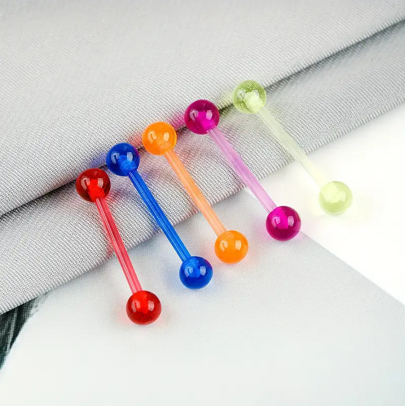 メーカー卸売ソフトロッドアクリル舌ネジ UV ストレートバーベルキャンディーカラー舌ジュエリーボディピアスクロスボーダーホットセール