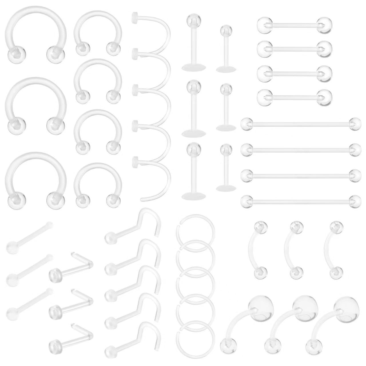 跨境48件亚克力唇钉马蹄杆鼻环鼻钉肚脐钉舌钉隐形套装亚马逊热销
