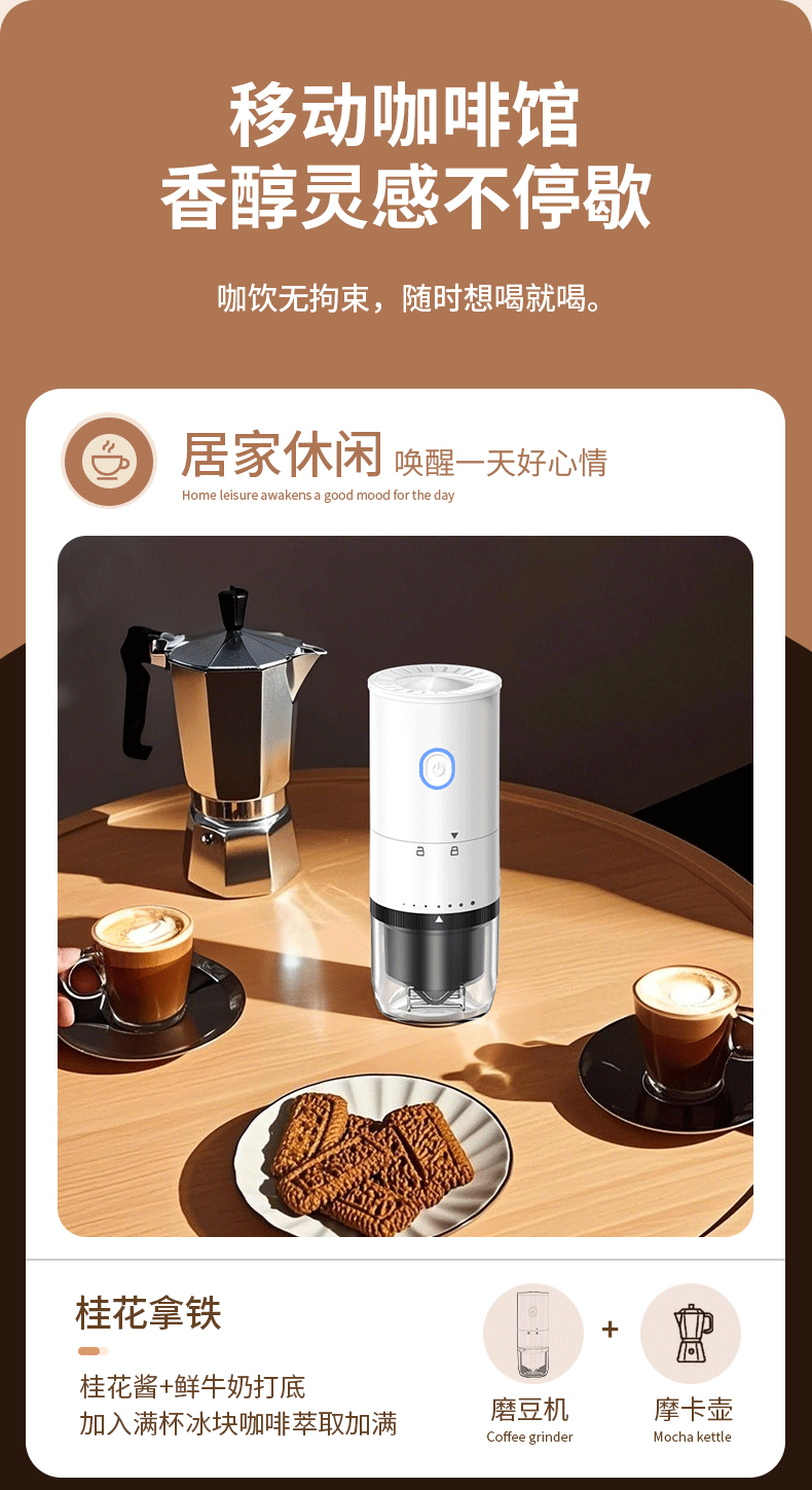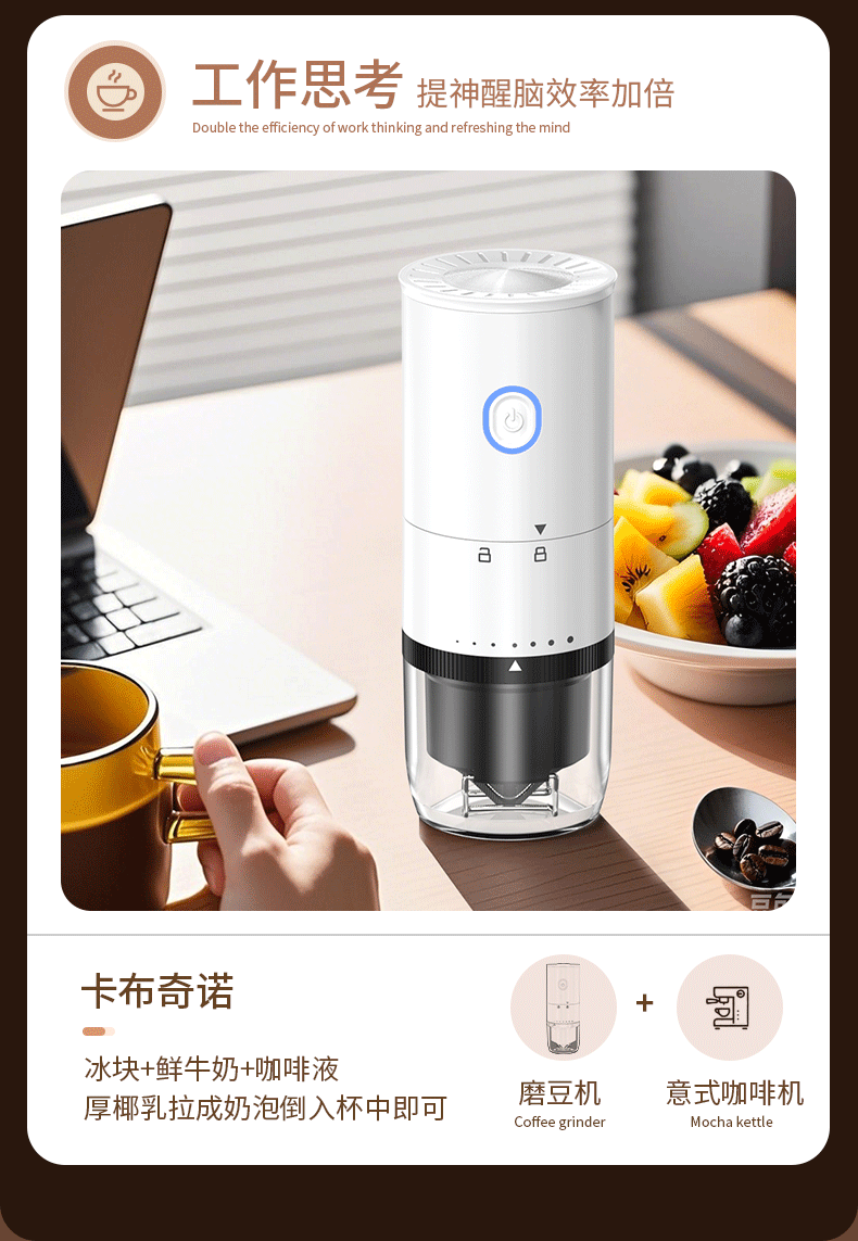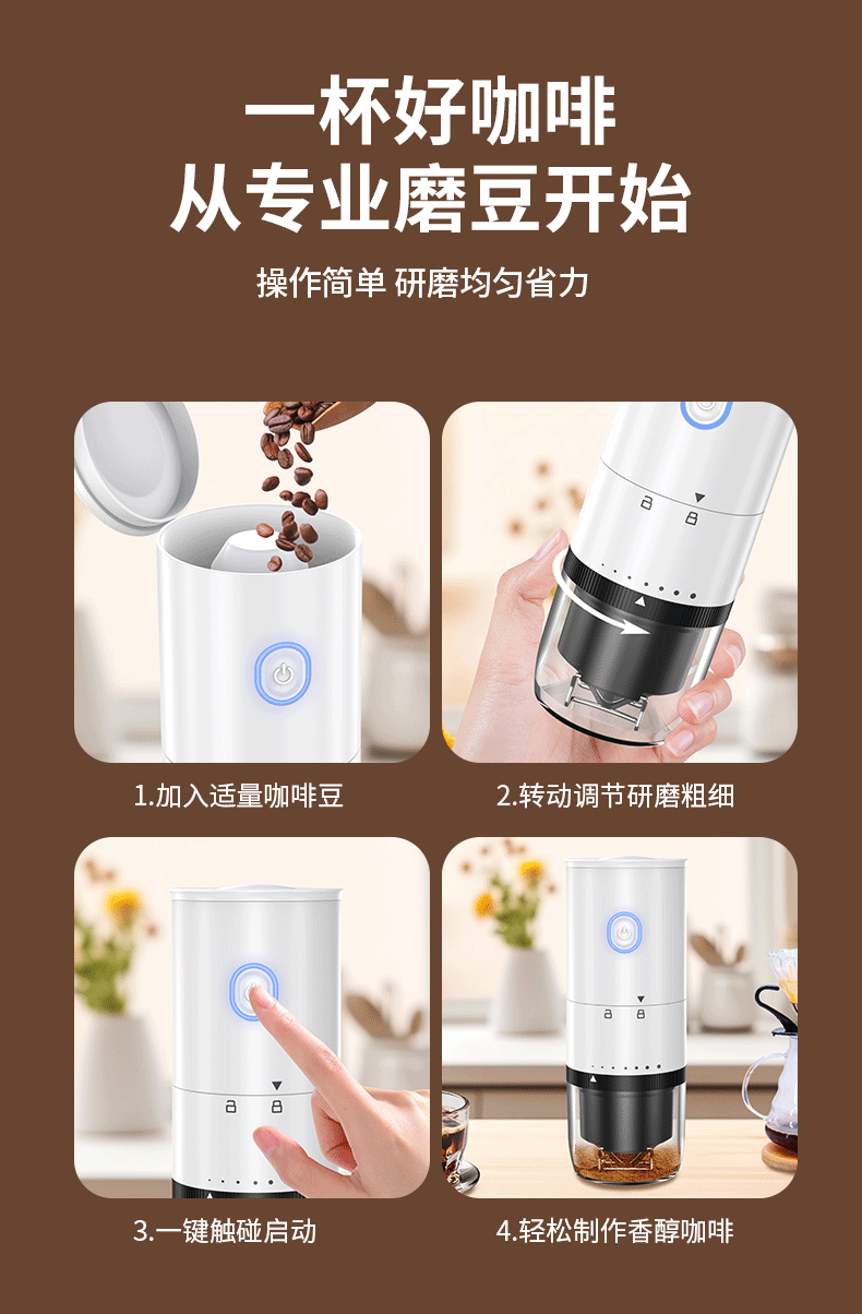 跨境热卖电动咖啡磨豆机家用小型手摇咖啡豆研磨机便携全自动研磨