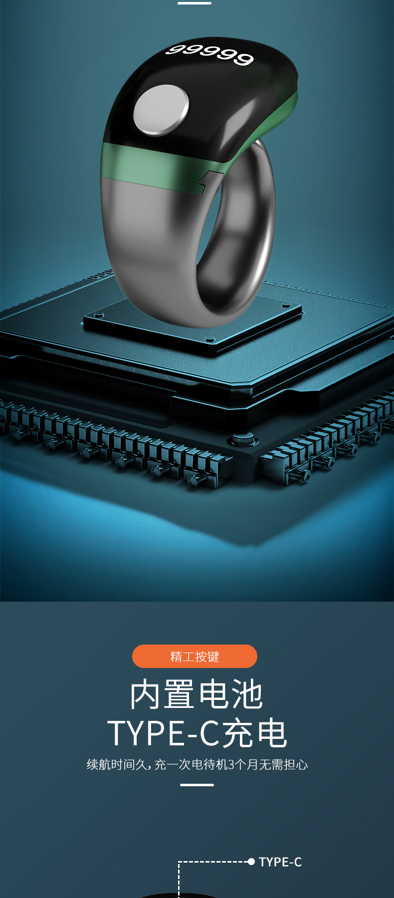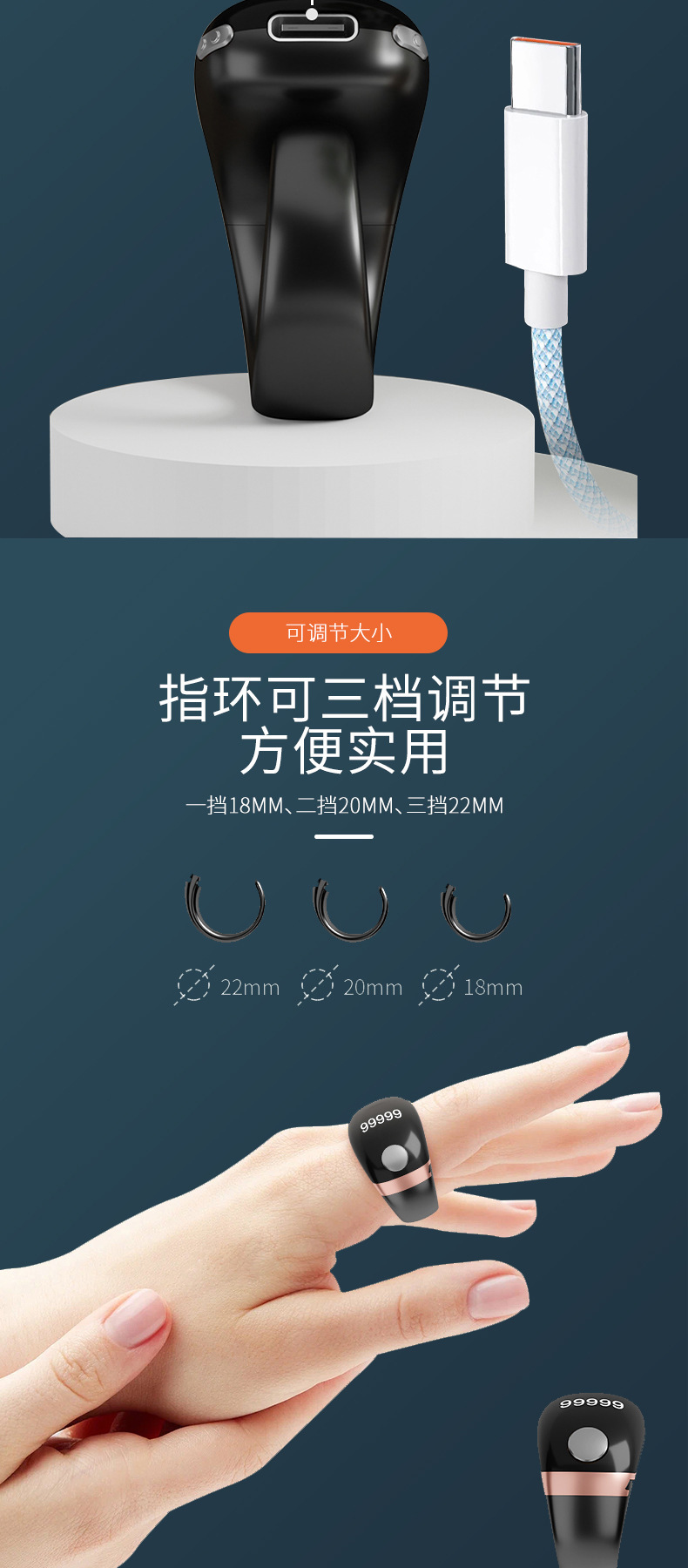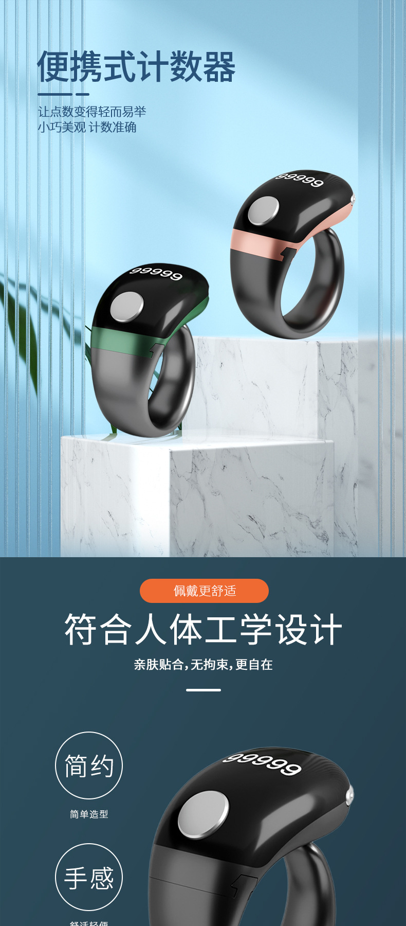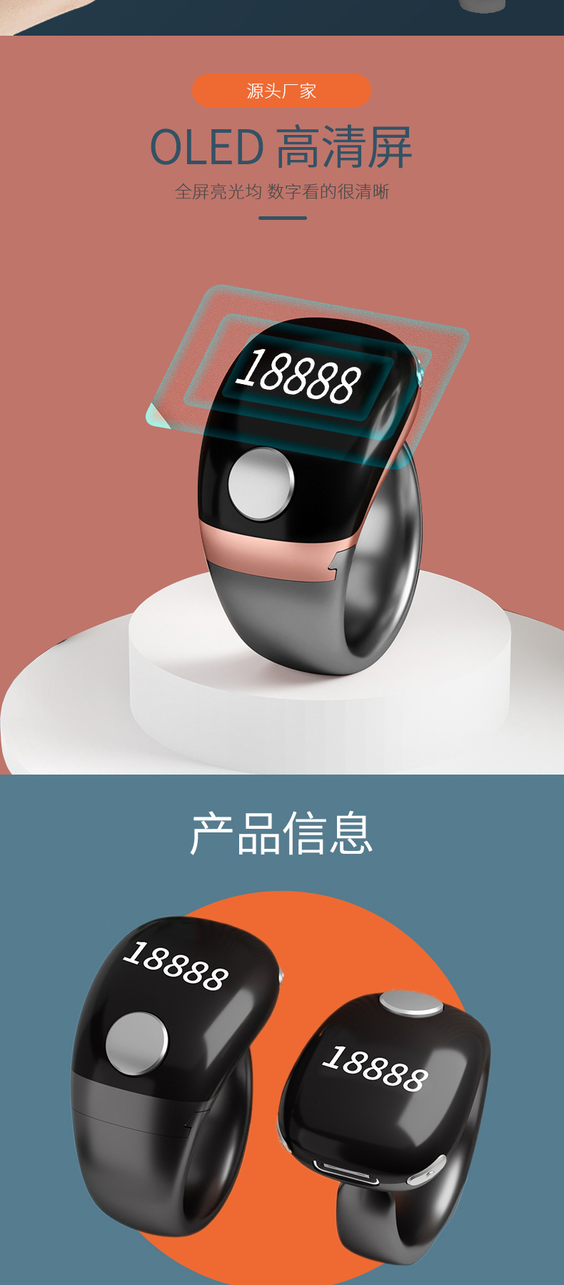 贝奇电子beiqi充电电池戒指款OLED屏多功能电子计数器厂家直销
