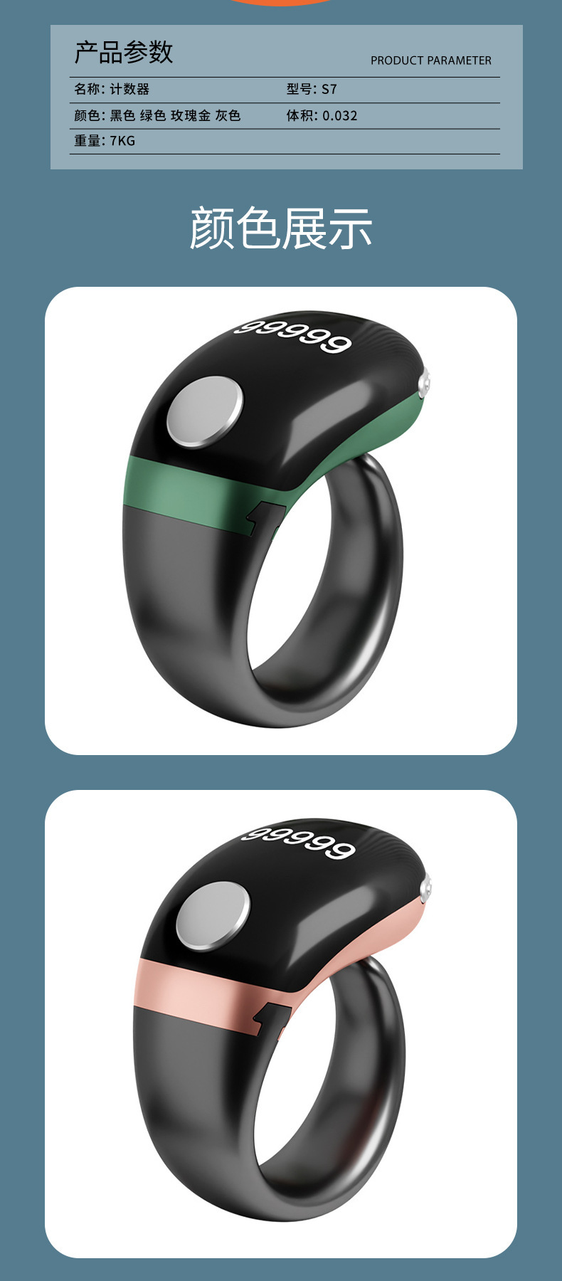 S7可换戒托OLED显示屏电子计数器手按指环款戒指多通道批发数码