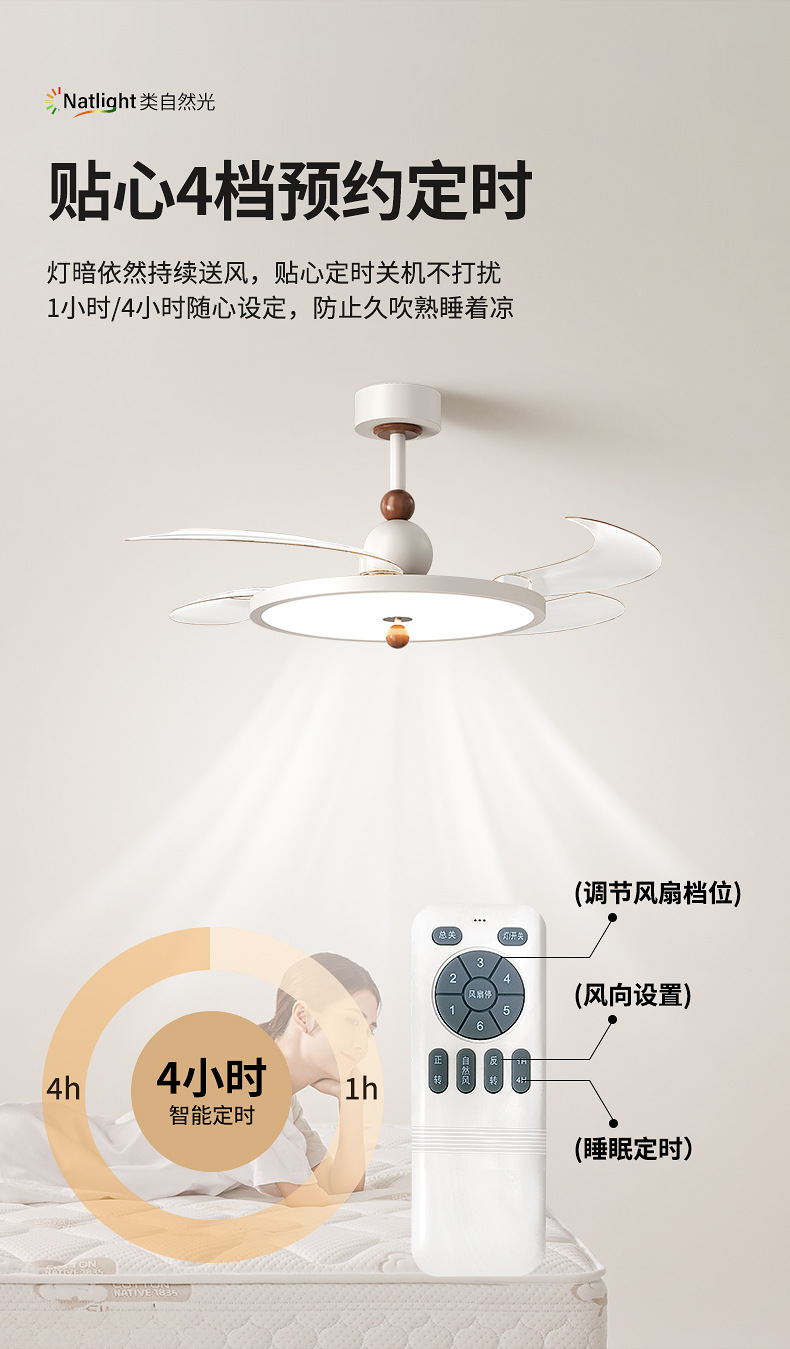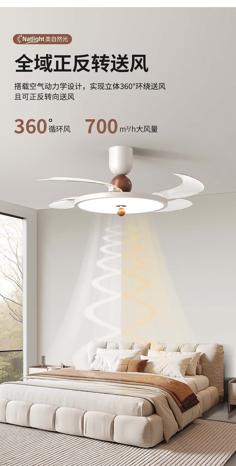 木目調シンプルファンシーリングライトマスターベッドルームルームライト中世わびさびスタイル教室レストランサイレントファンライト新しい