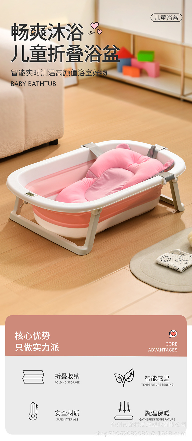 源头工厂新生儿折叠洗澡盆宝宝洗澡盆儿童澡盆折叠澡盆感温显示盆