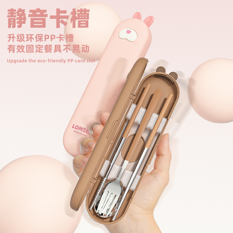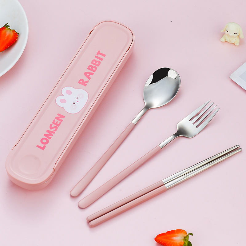 304漫画ステンレススプーン・フォーク・箸携帯食器セット学生・会社員向け卸売学生食器