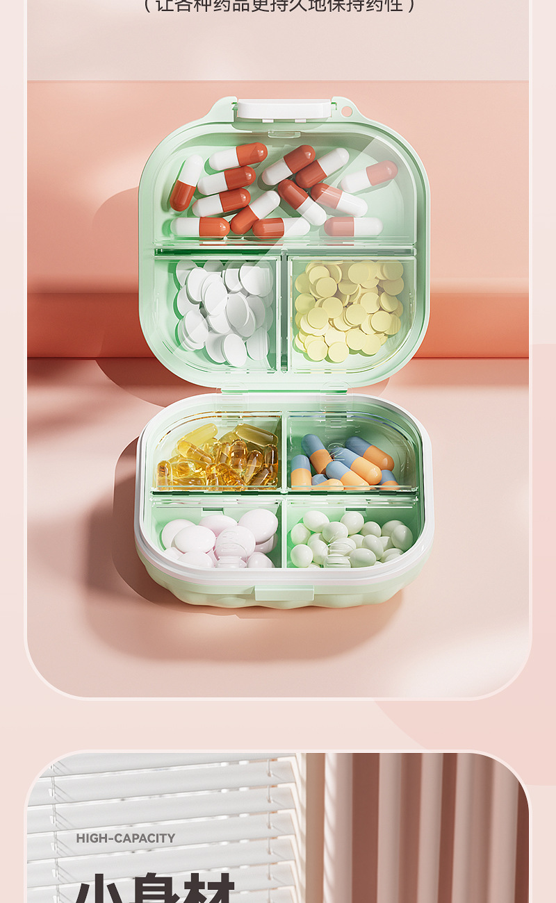 旅行用薬収納ボックス、カプセル包装ボックス、マルチグリッドポータブル錠剤、家庭用密封防湿錠剤ボックス収納