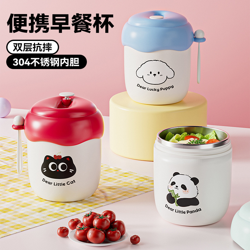 304卡通牛奶杯可爱学生便携保温早餐杯上班族豆浆杯大容量燕麦杯