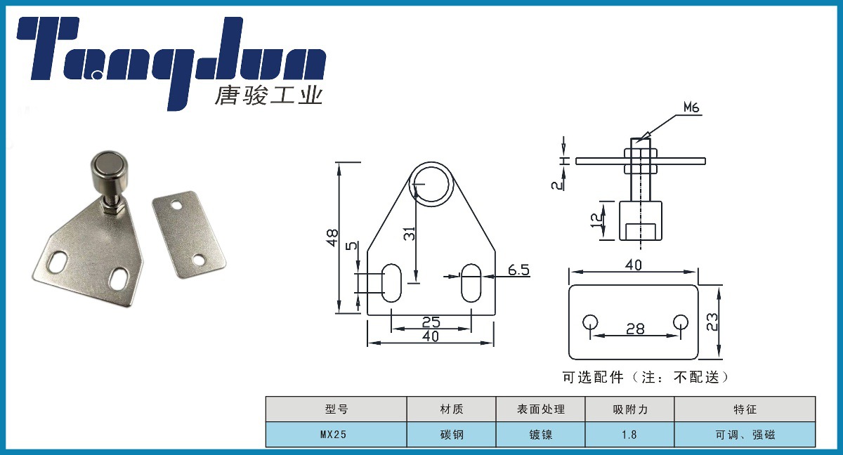 AKC22-T 可调 门吸3040型材三角门阻 工业铝型材槽内门碰强力磁铁