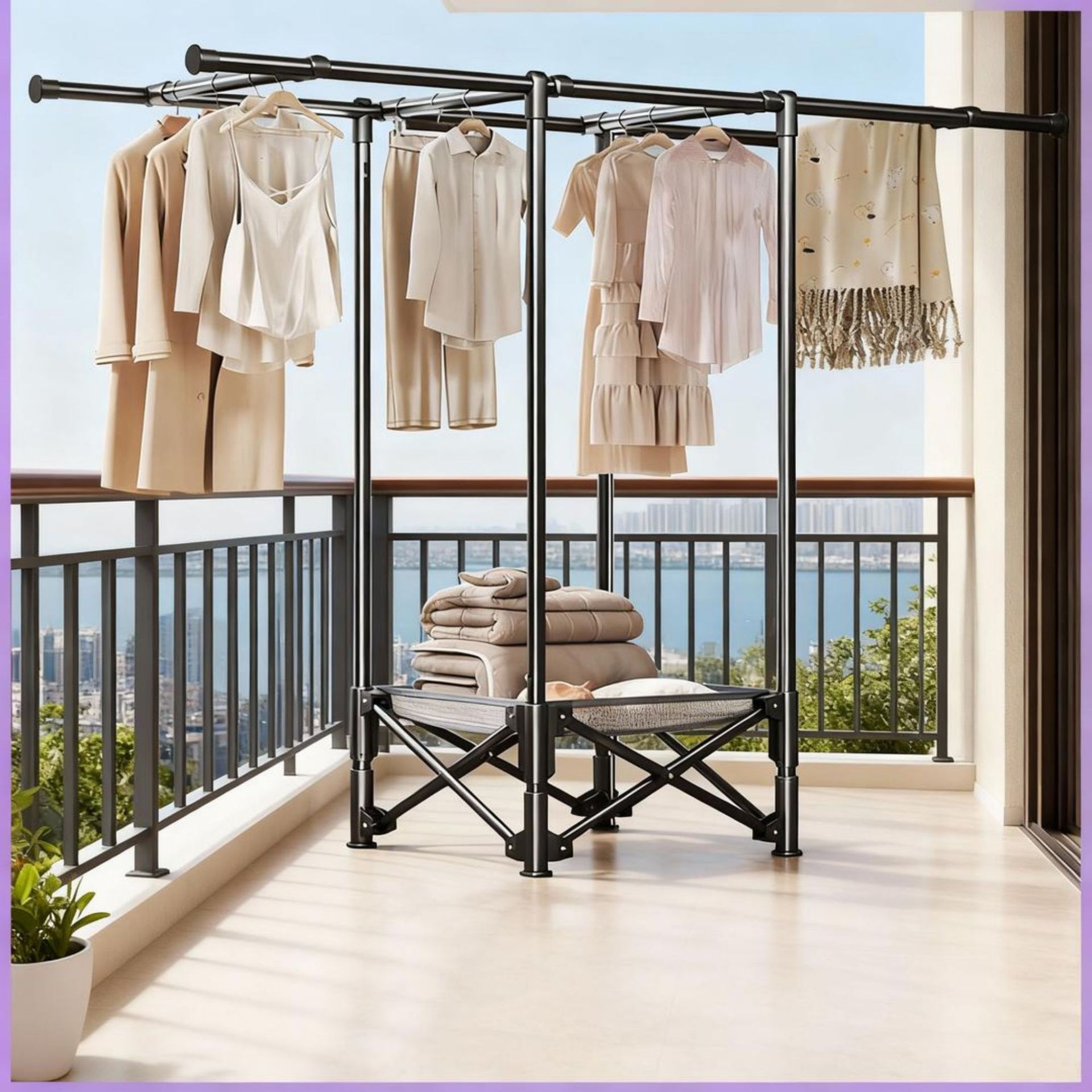 晾衣架挂衣阳台晾被折叠伸缩双杆晒衣架室外凉衣杆室内晾衣架落地