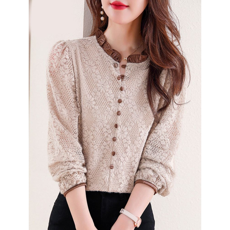 洋気レースの底のシャツの女性の長袖の秋冬の新型の保温の小さいシャツの高級感の大きいサイズの婦人服の上着