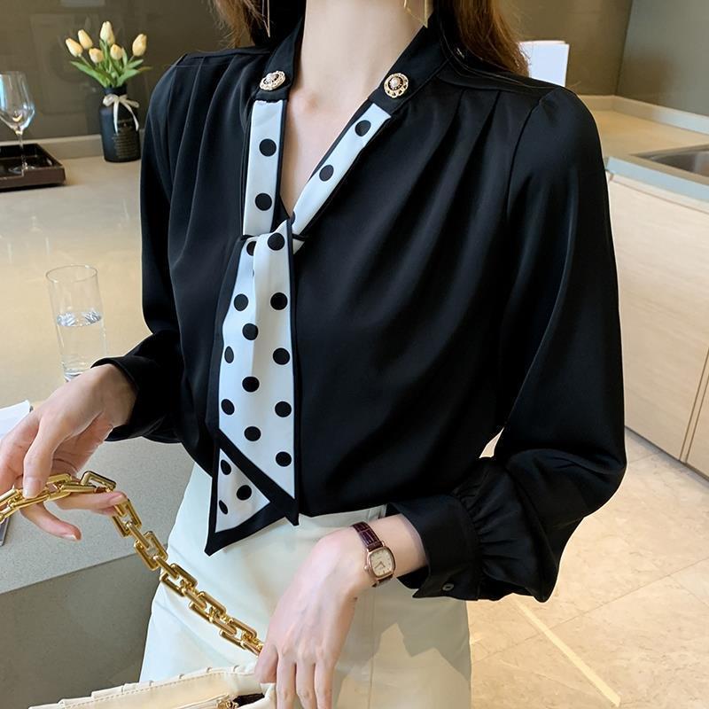 秋のシフォンの女性のシャツの秋服2025年の新しい上着の女性のデザイン感の小さい大衆の高級な洋風の小さいシャツ