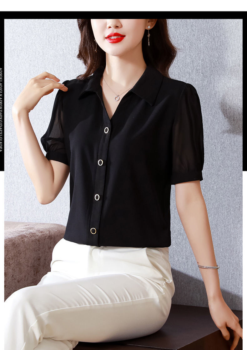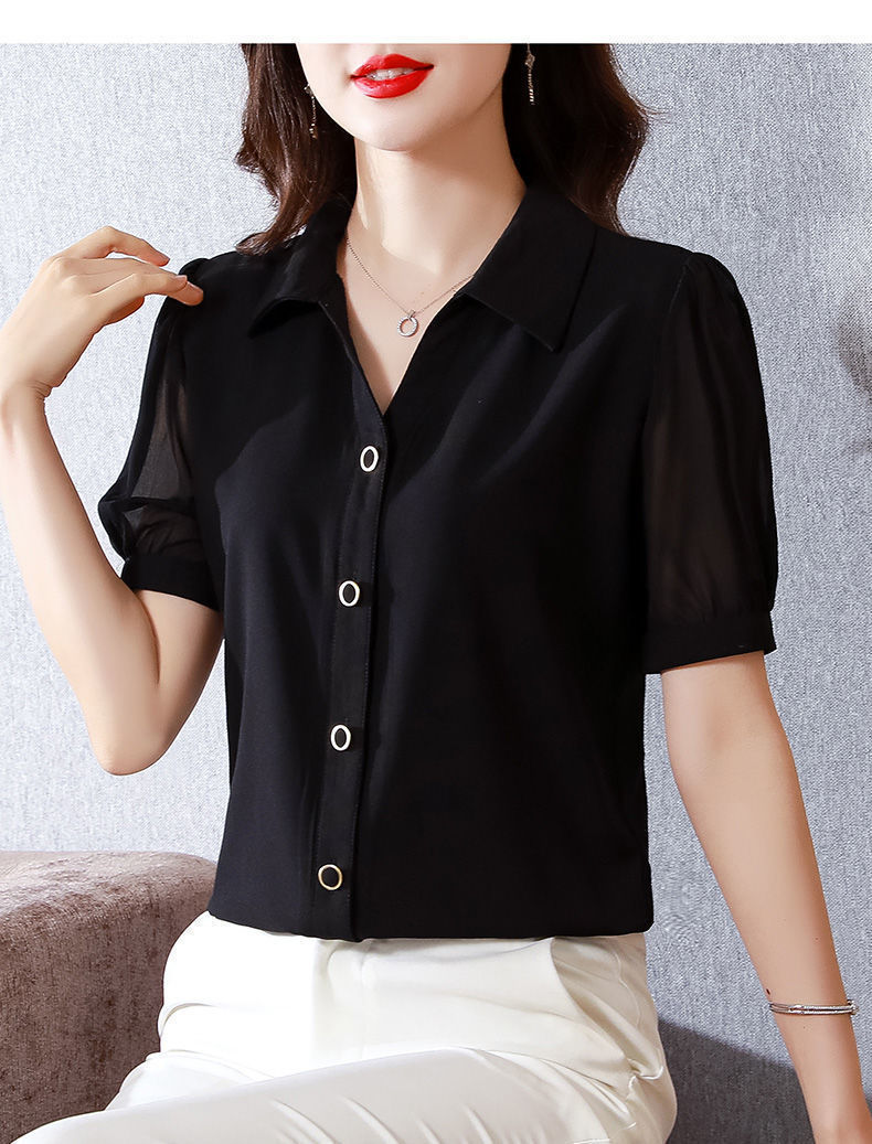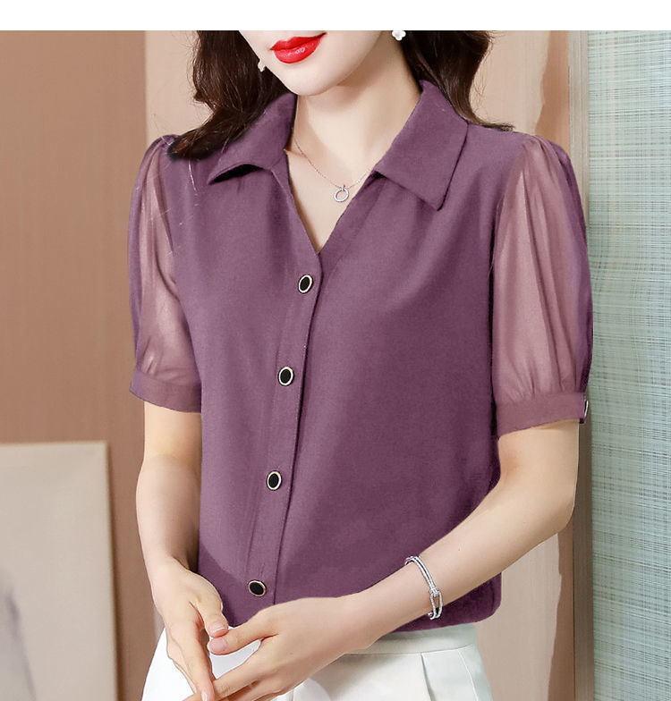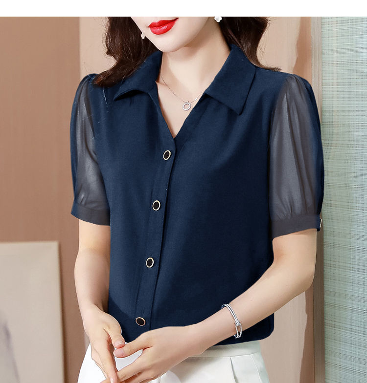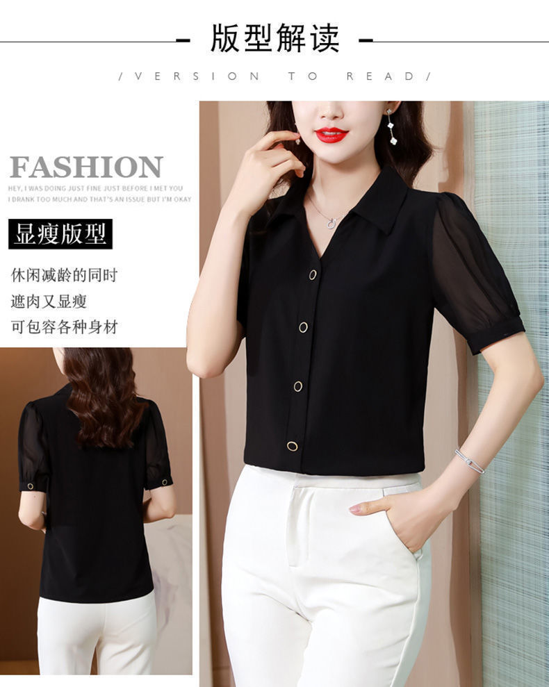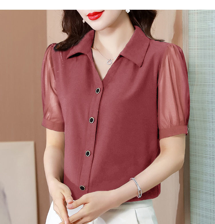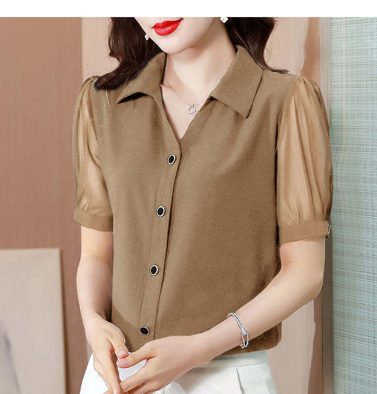 レディース半袖シフォンシャツ夏新作肉隠し着痩せシャツレディース洋気減齢上着