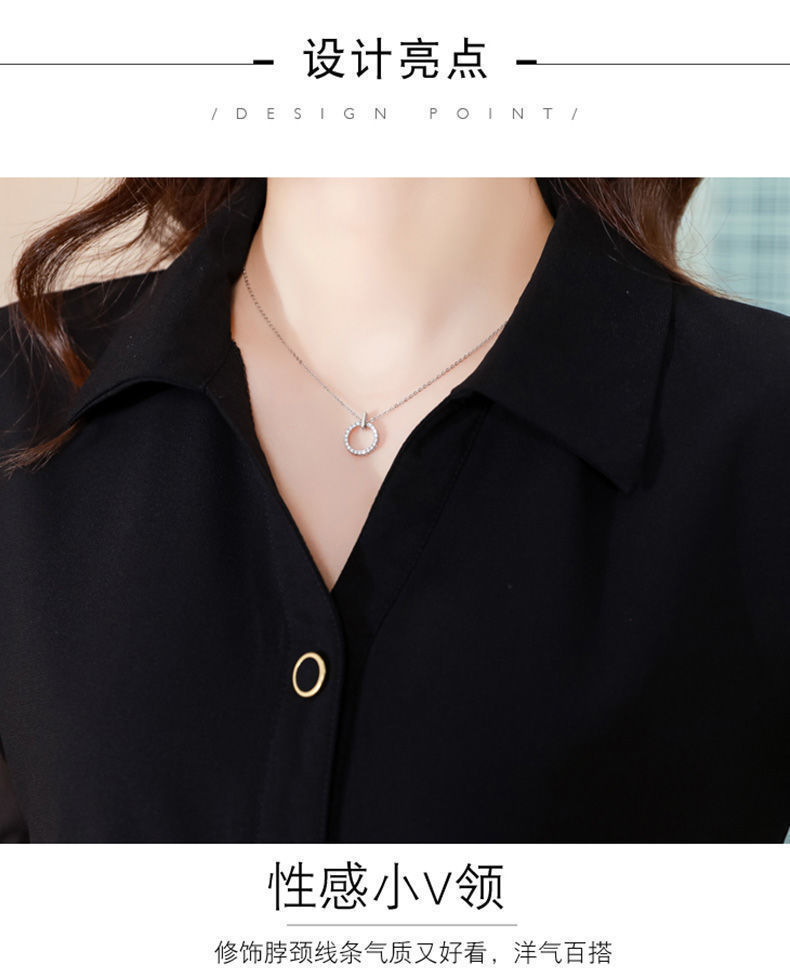 春と秋のゆったりとした大きいサイズの純色のシフォンのシャツの女性の韓国版のカジュアルな風の香港風の長袖のシャツの底のシャツ