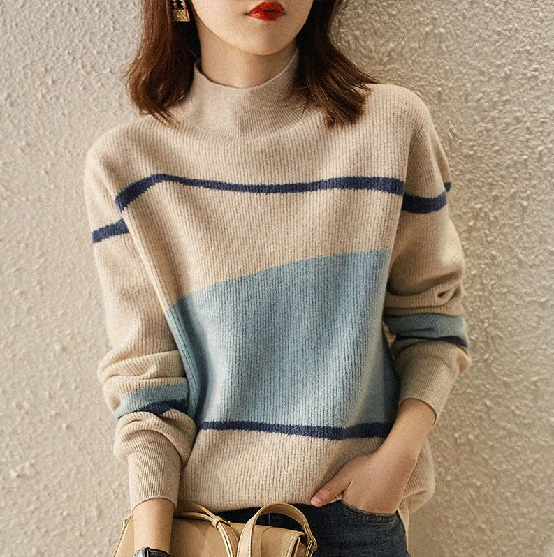 跨境女装2025秋季新款韩版修身条纹V领长袖t恤女士打底衫学生上衣