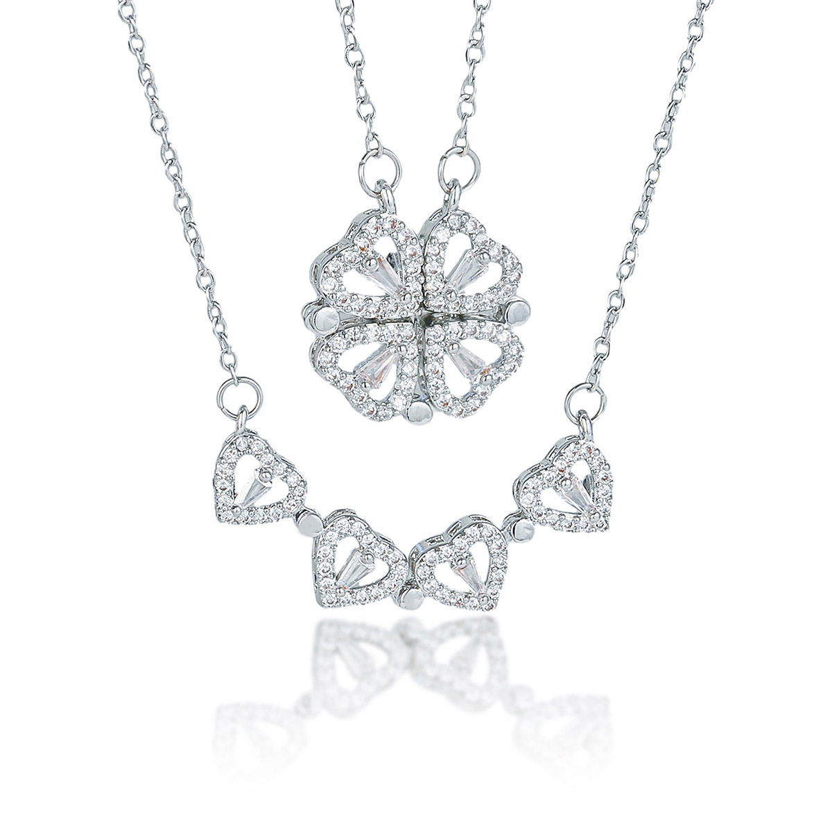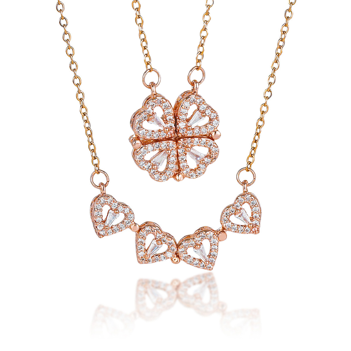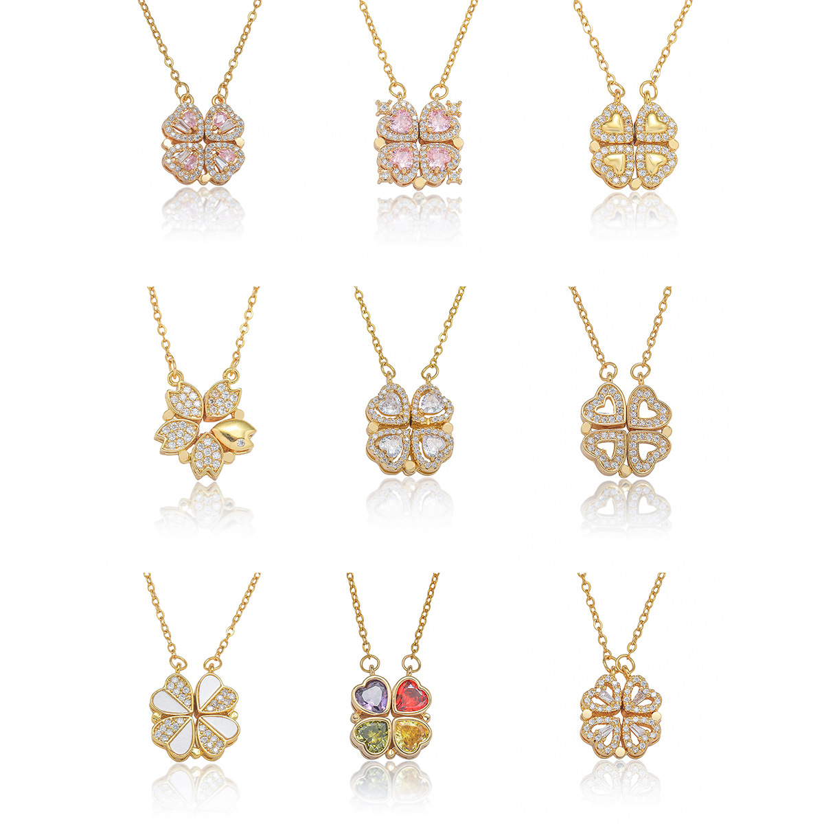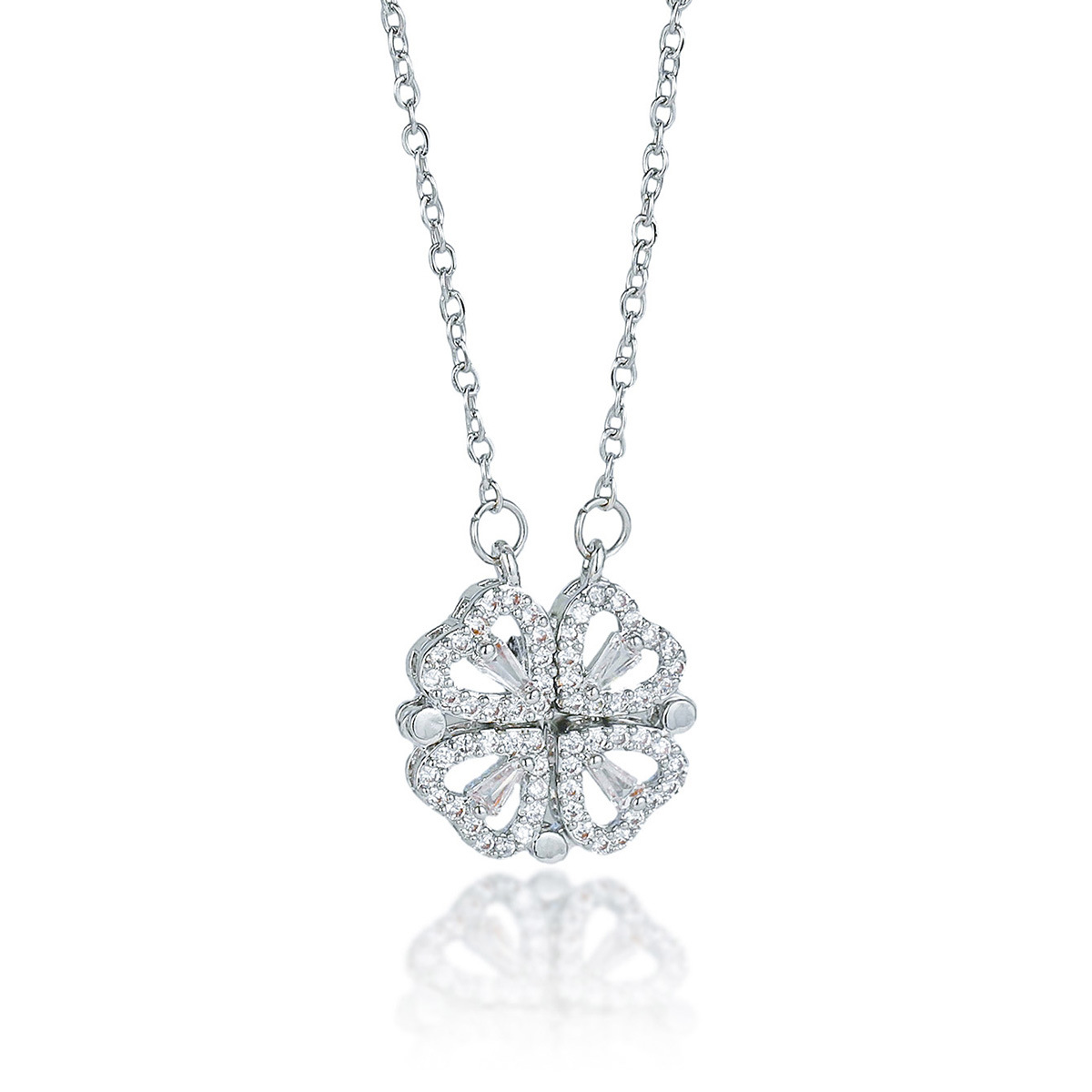 【铜吊坠】亚马逊跨境爆款轻奢满锆轻奢爱心四叶草磁吸项链高级感