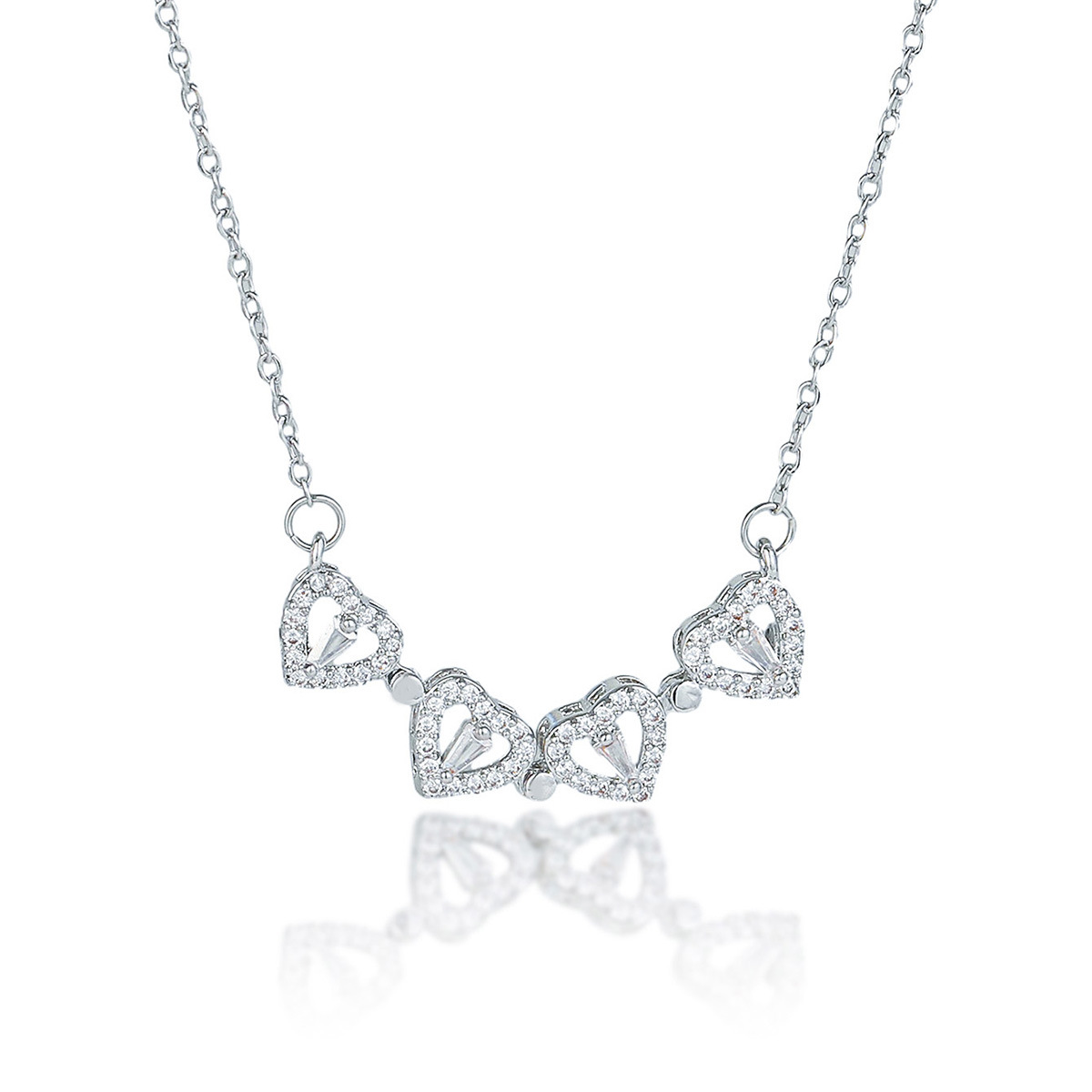 项链女法式气质时尚一款两戴四叶花心连心开合爱心折叠锁骨链饰品