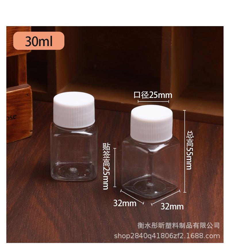 30 50 100ミリリットル透明角瓶大口白蓋プラスチック分注瓶pet小薬瓶サンプル空瓶
