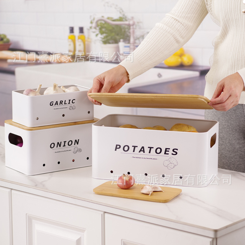 国境を越えたジャガイモ桶玉ねぎニンニク収納缶セット台所果物野菜貯蔵箱ジャガイモ金属通気保鮮