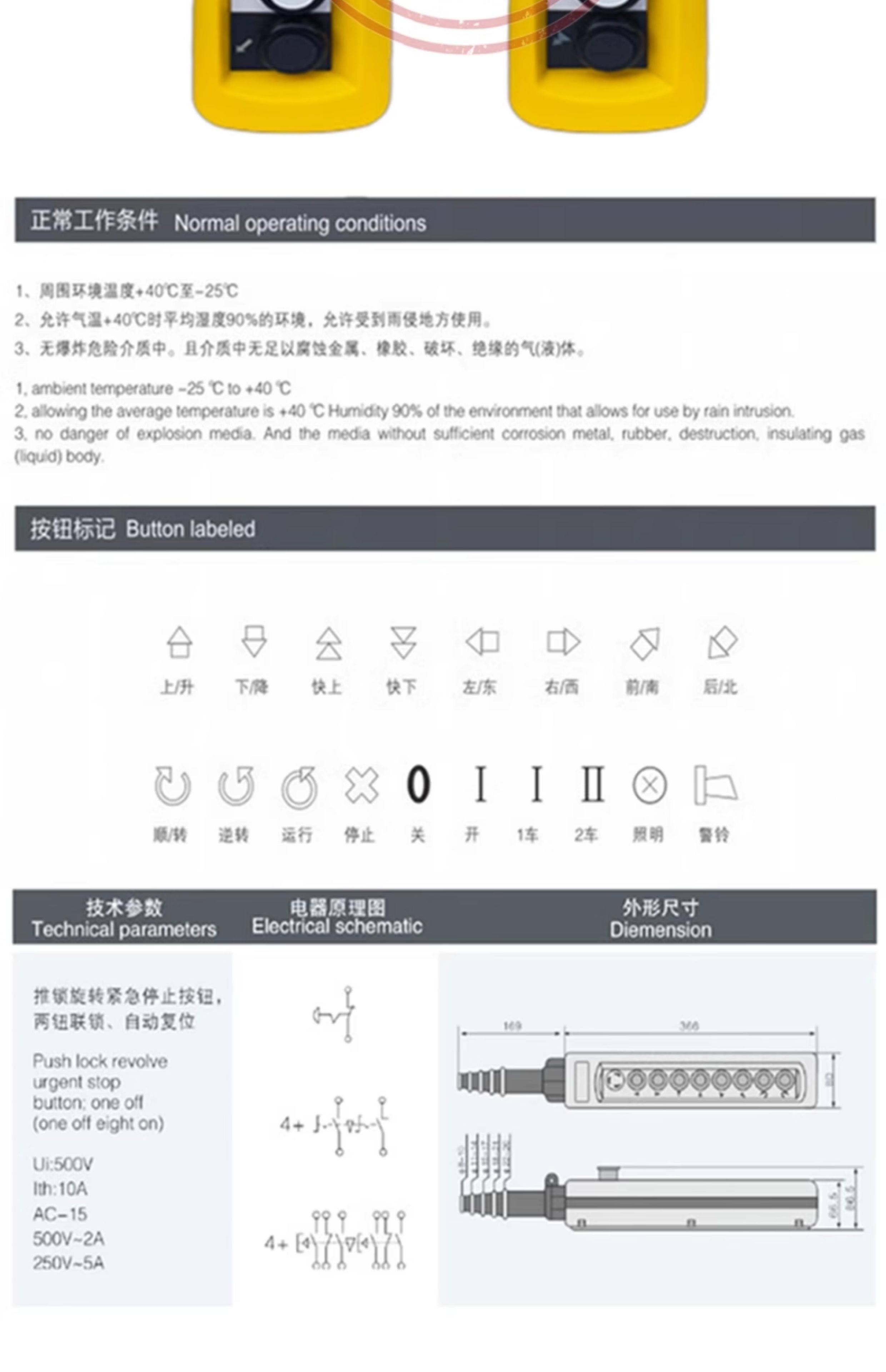 Longguang Fangshan 運転シングルスピードボタンスイッチ YQA1-3F 電気ホイストウインチハンドドア/ハンドコンピュータ