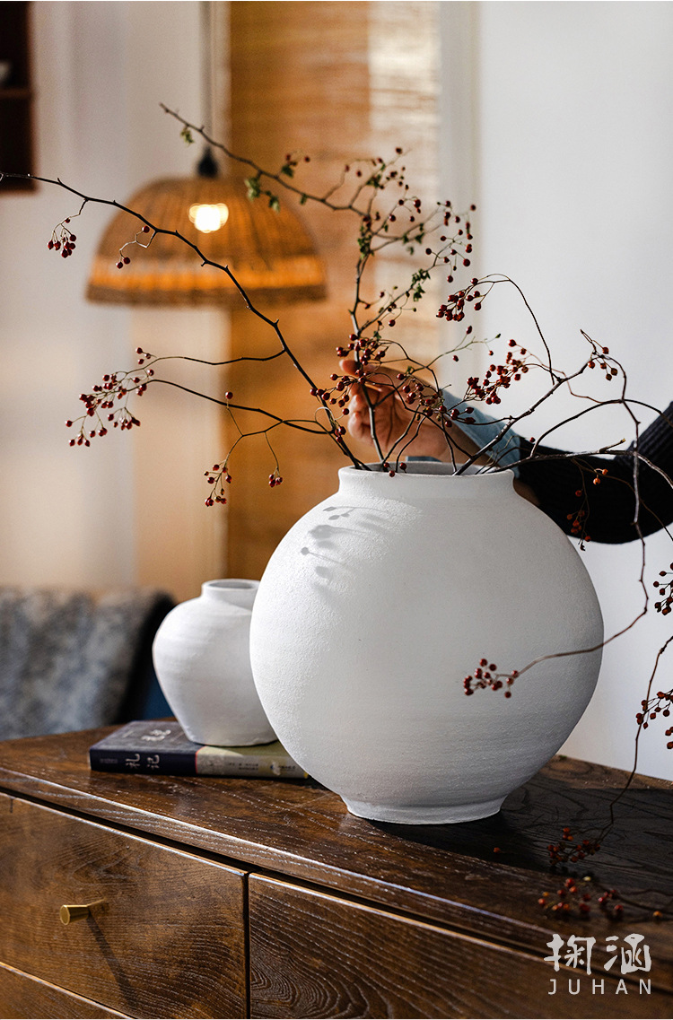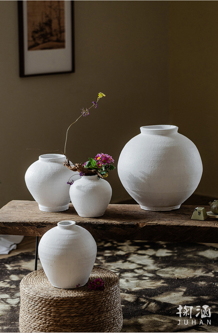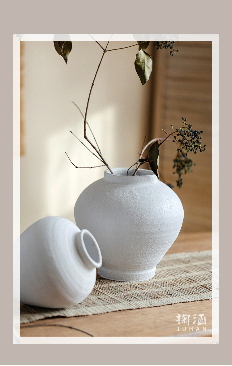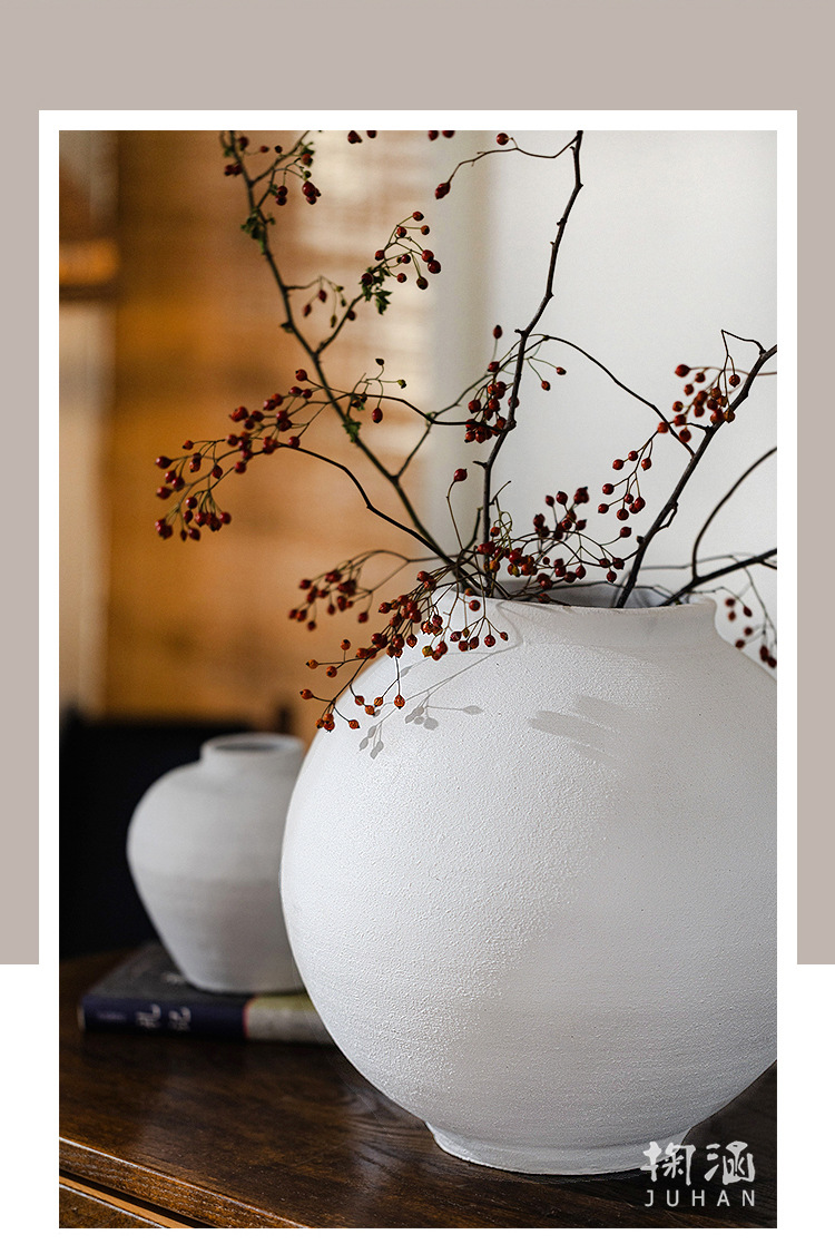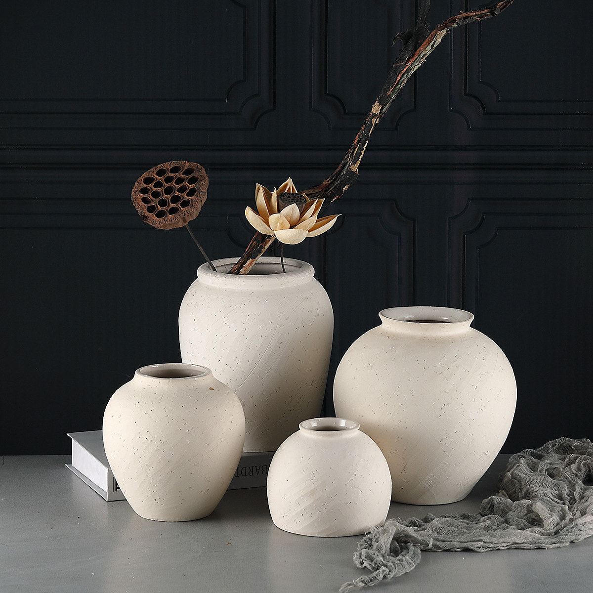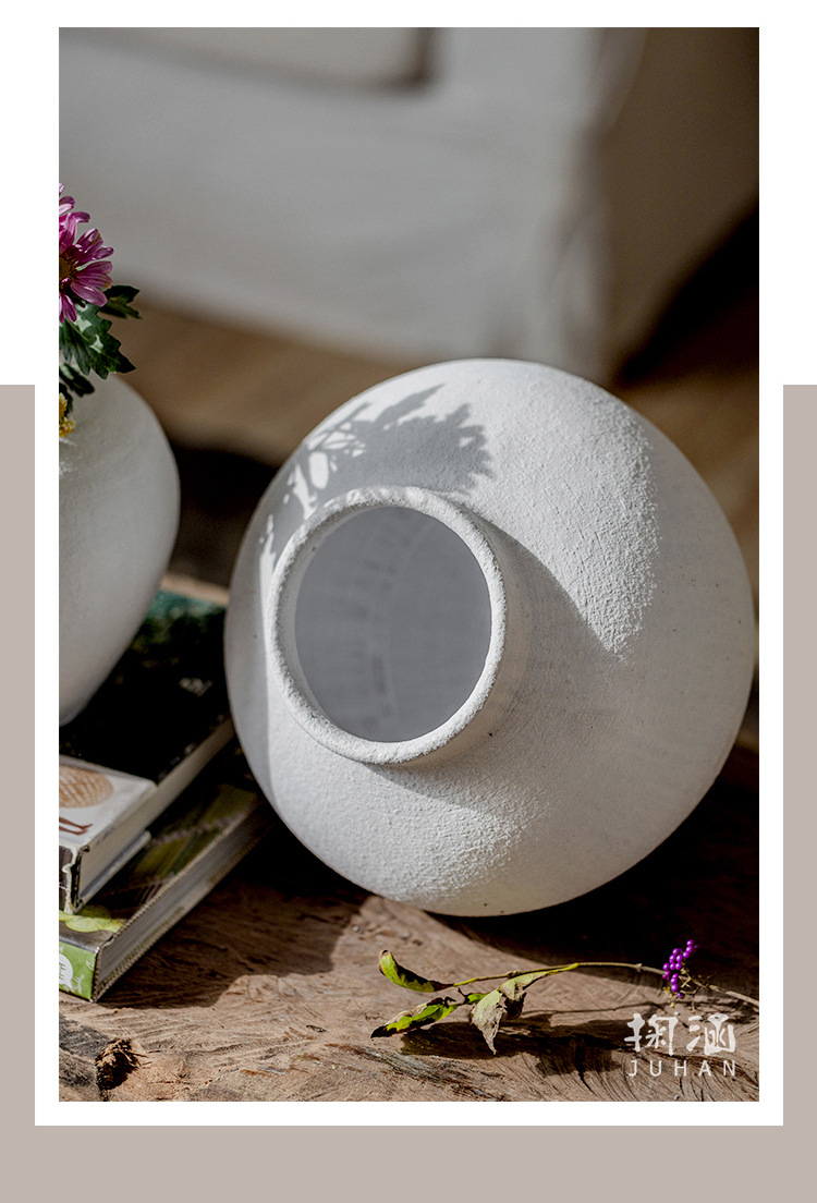 白い丸い花瓶高級感置物リビング生け花器レトロ粗陶月缶民宿禅意装飾