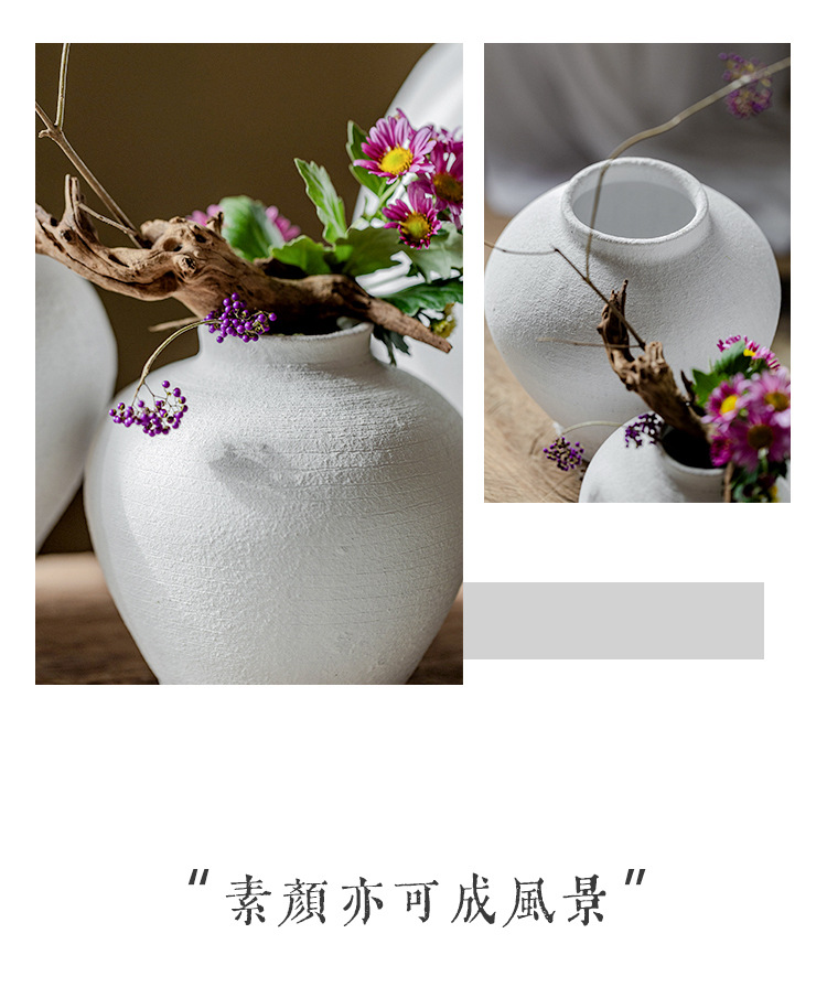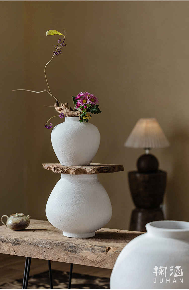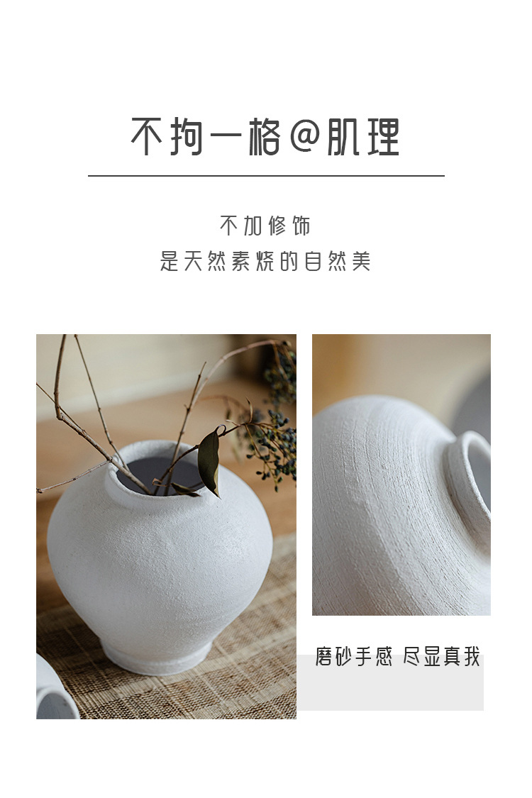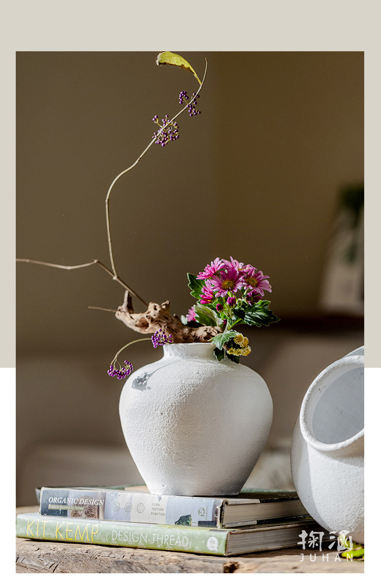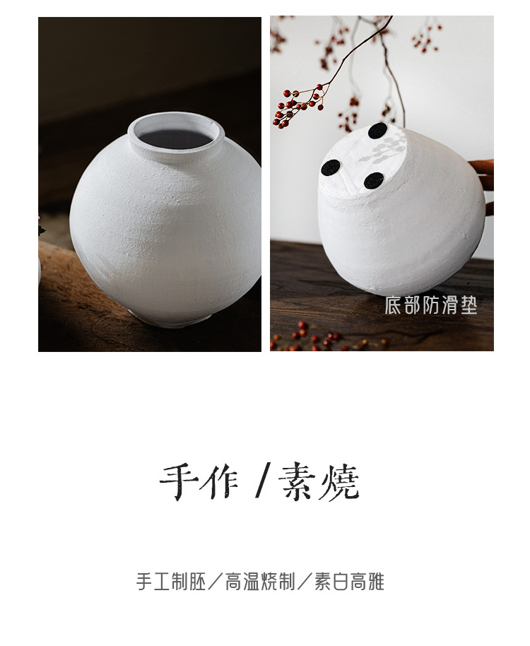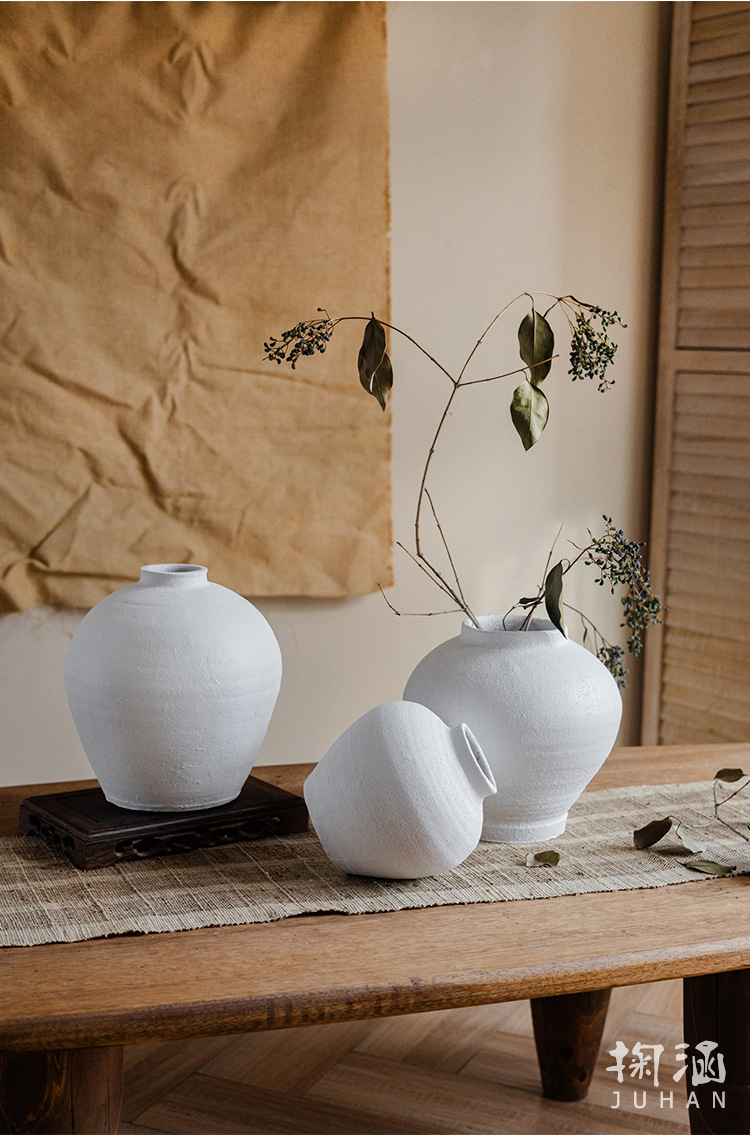 白い丸い花瓶高級感置物リビング生け花器レトロ粗陶月缶民宿禅意装飾