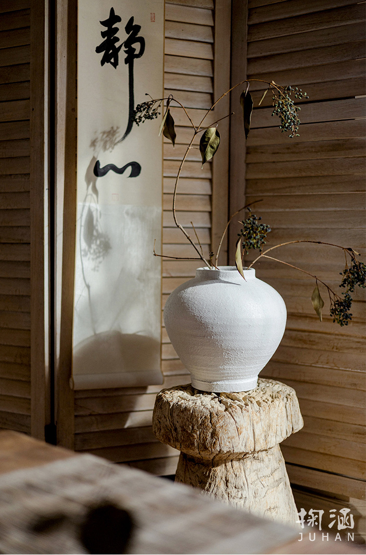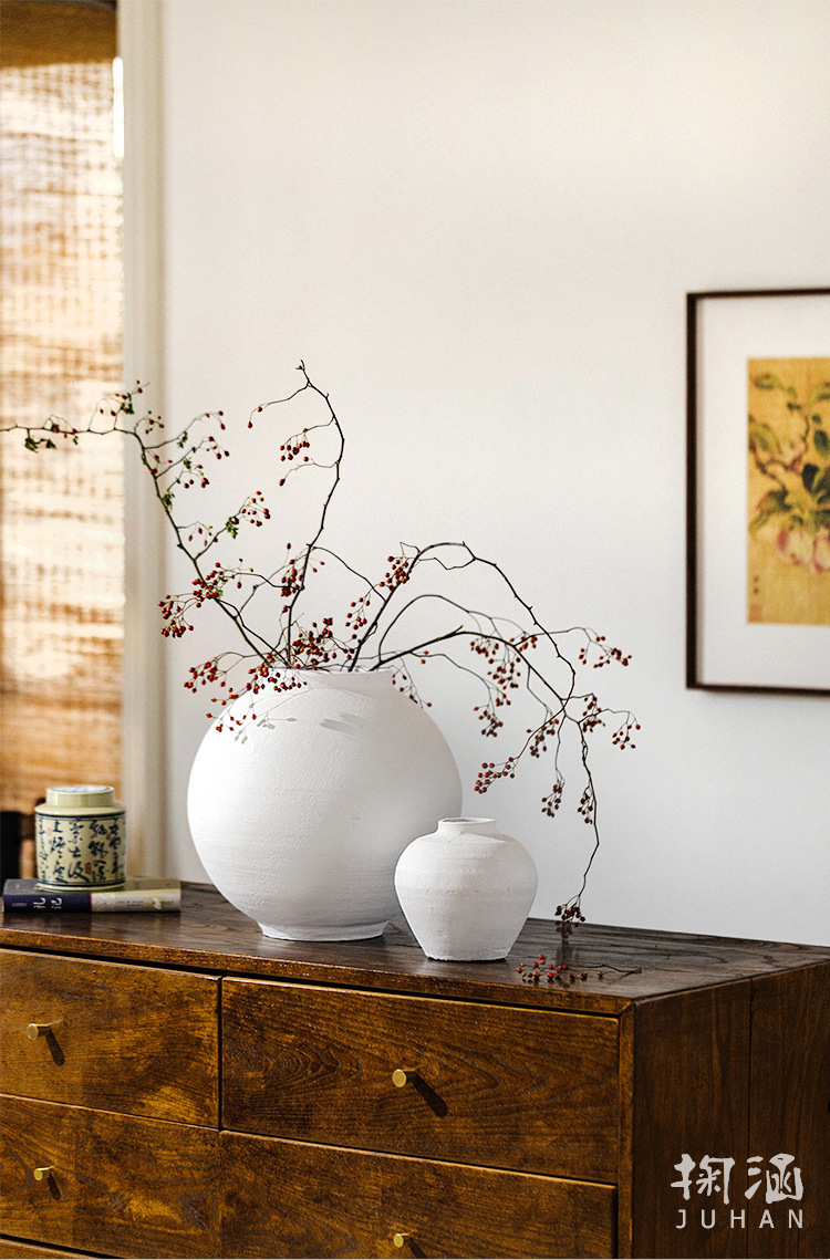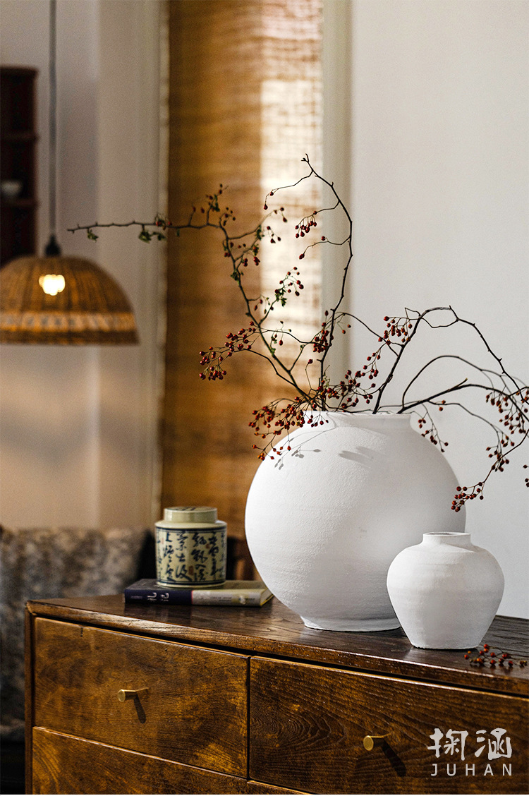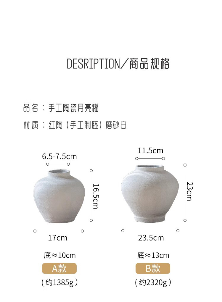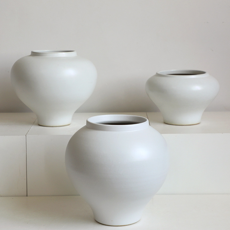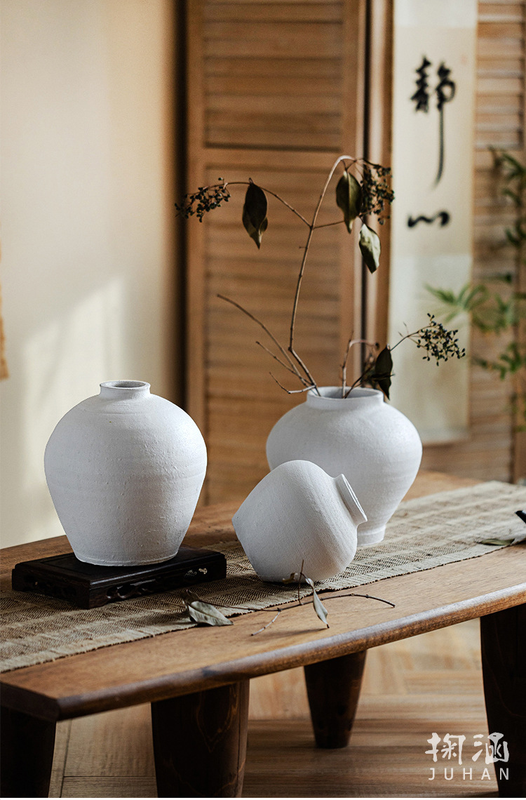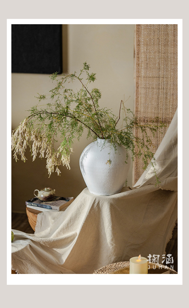 白い丸い花瓶高級感置物リビング生け花器レトロ粗陶月缶民宿禅意装飾