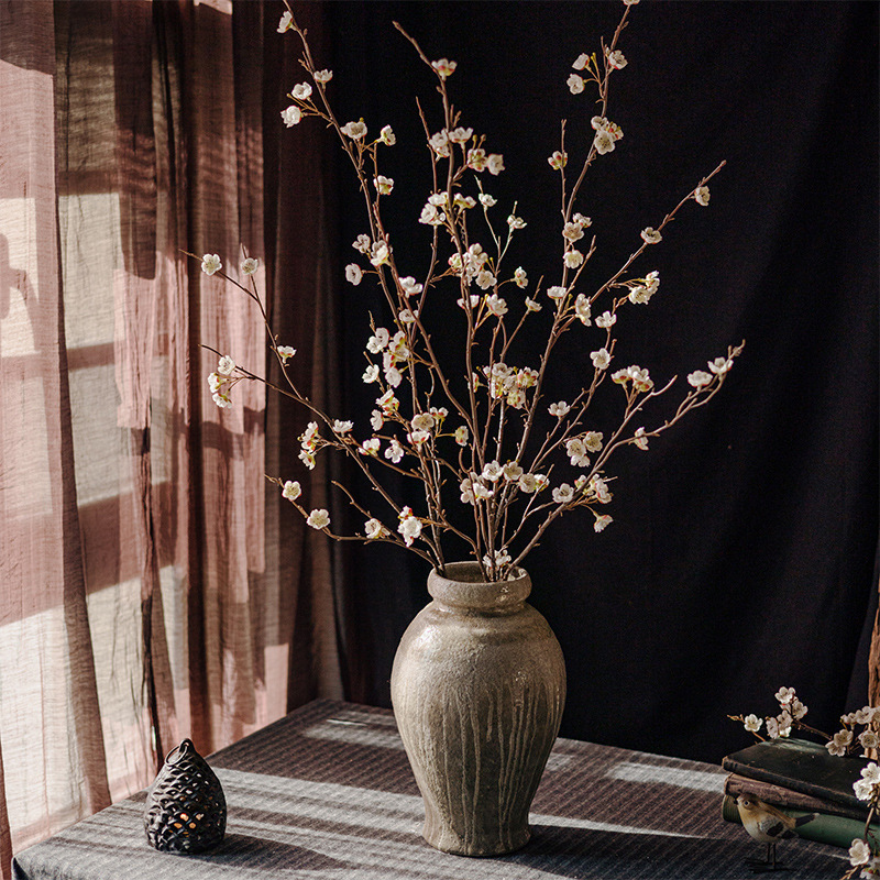 わびさび風の陶器の花瓶、高級レトロな陶器の花瓶、大きな花瓶、フラワーアレンジメント、軽くて豪華な装飾花瓶