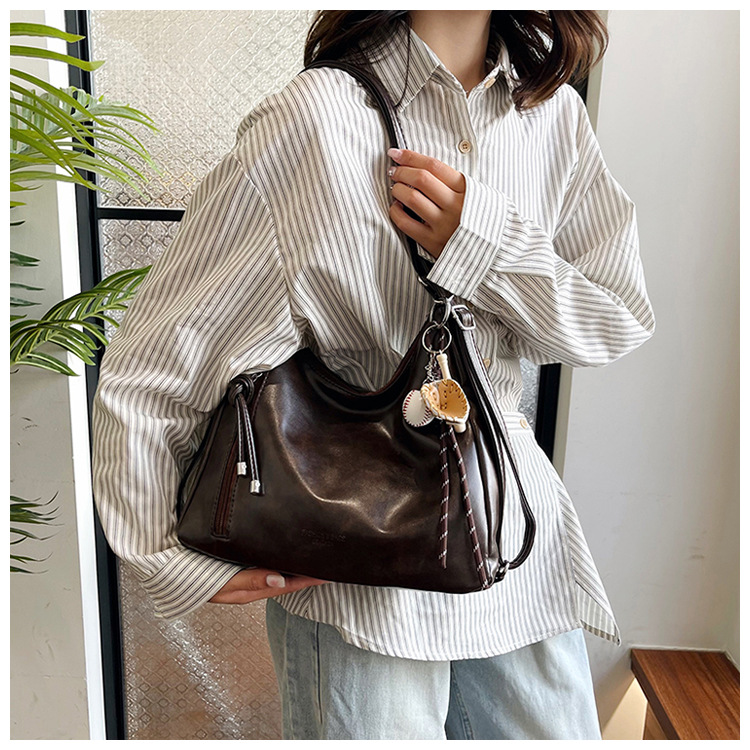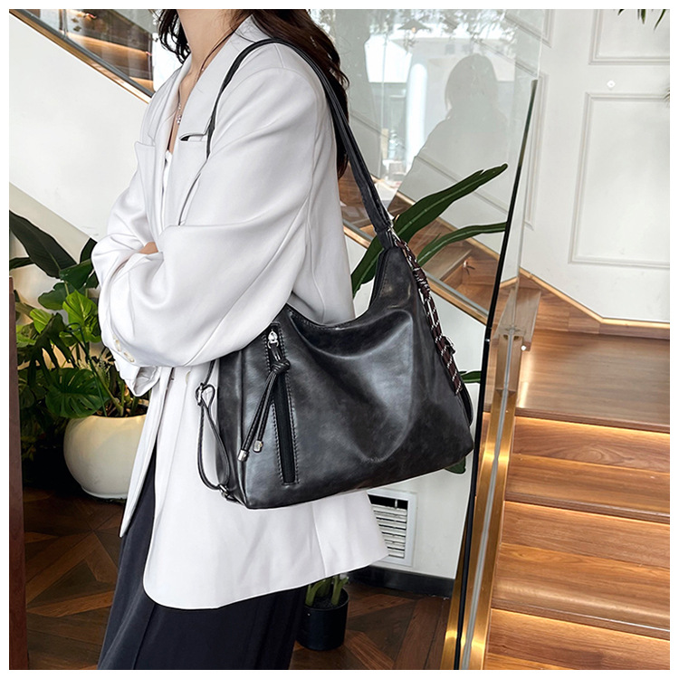 大容量レトロなトートバッグの女性2024冬の新しい純色ファッションカジュアル通勤シンプルなショルダーバッグ女性
