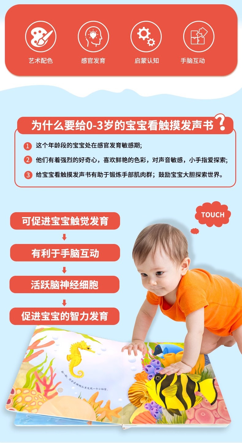 会发声的触摸书0-3岁幼儿有声触摸绘本蒙氏早教启蒙触摸点读书中