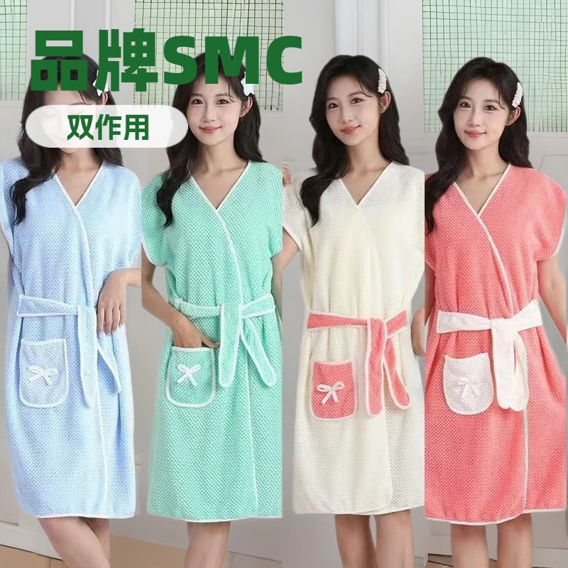おしゃれなバスローブ、大人用紐付きかわいい着るタイプ学生用ナイトガウン、家庭用吸水性ソフトバスローブ、速乾性