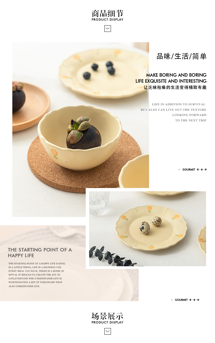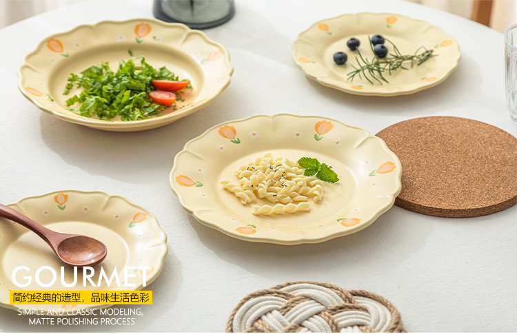 クリーム系食器・食器セット、陶器ボウル、ネットセレブボウル、ライスボウル、プレート、野菜プレート、ホームファッションヌードルボウル、スープボウル