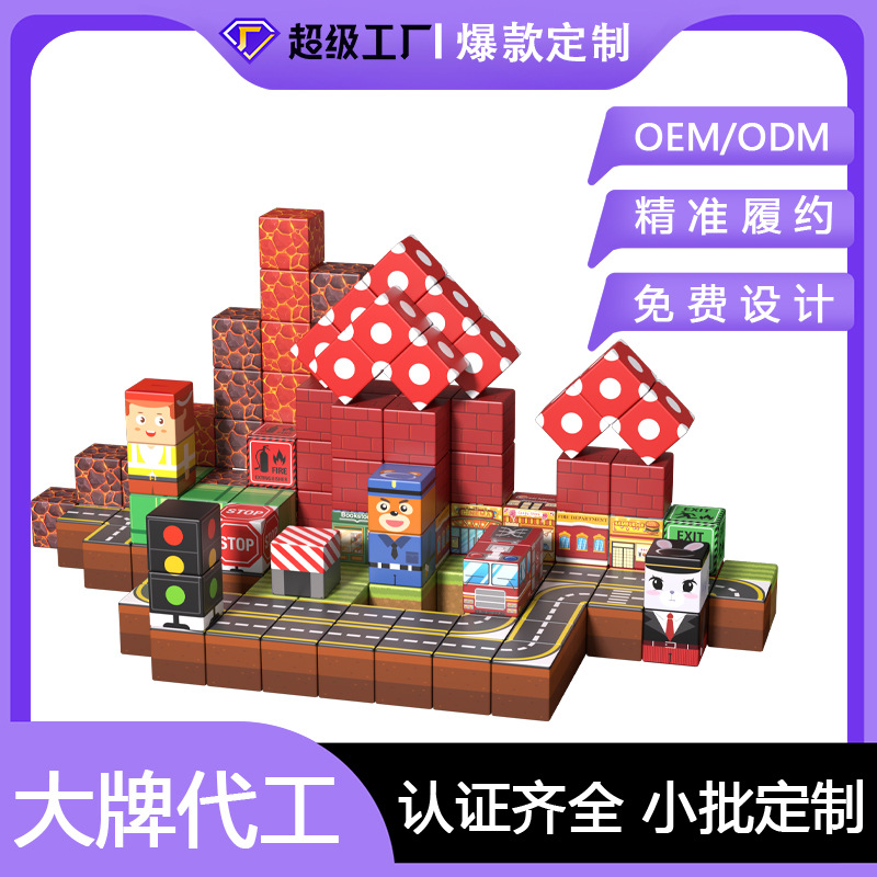 ソースクロスボーダー 2025 磁気ビルディングブロック強力な磁石磁気シート都市光と影交通建物カラーウィンドウ磁気シート