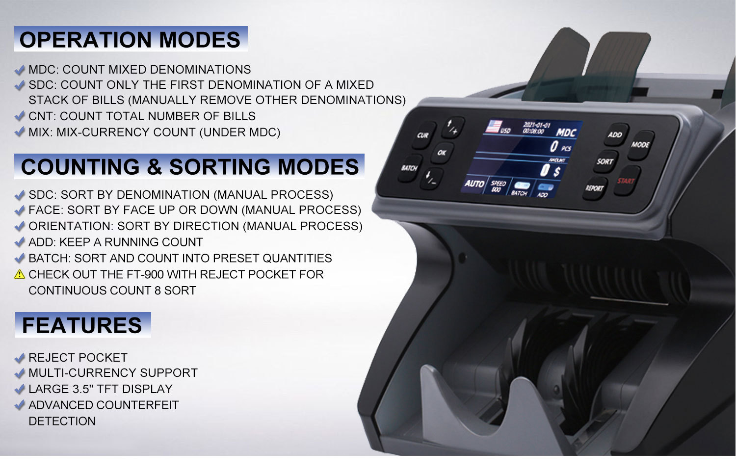 FT-700 銀行紙幣計数機 UV/MG 赤外線検出 CIS 画像技術 LED ディスプレイ混合紙幣計数機