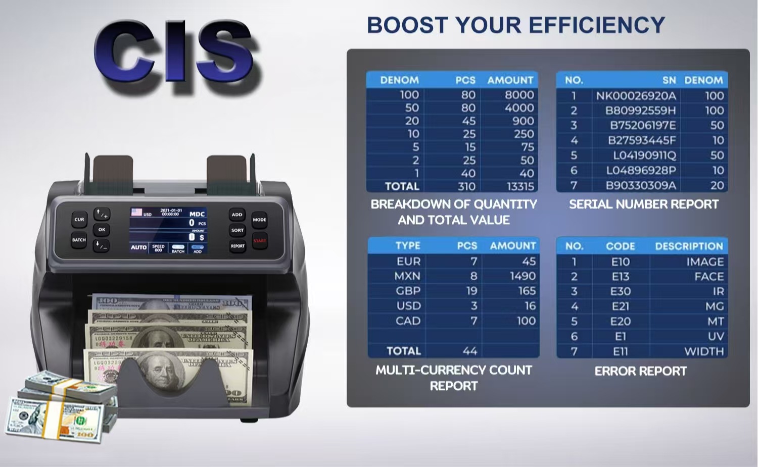 多通貨対応紙幣計数機 デュアルCIS画像認識 ドル・ユーロ対応 銀行券分類機 メーカー直販