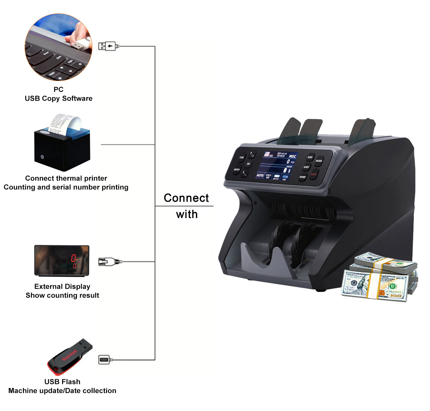 フルタッチスクリーン通貨紙幣計数機、多外国通貨紙幣検出機、米ドル、ユーロ、ポンド、人民元紙幣分類機