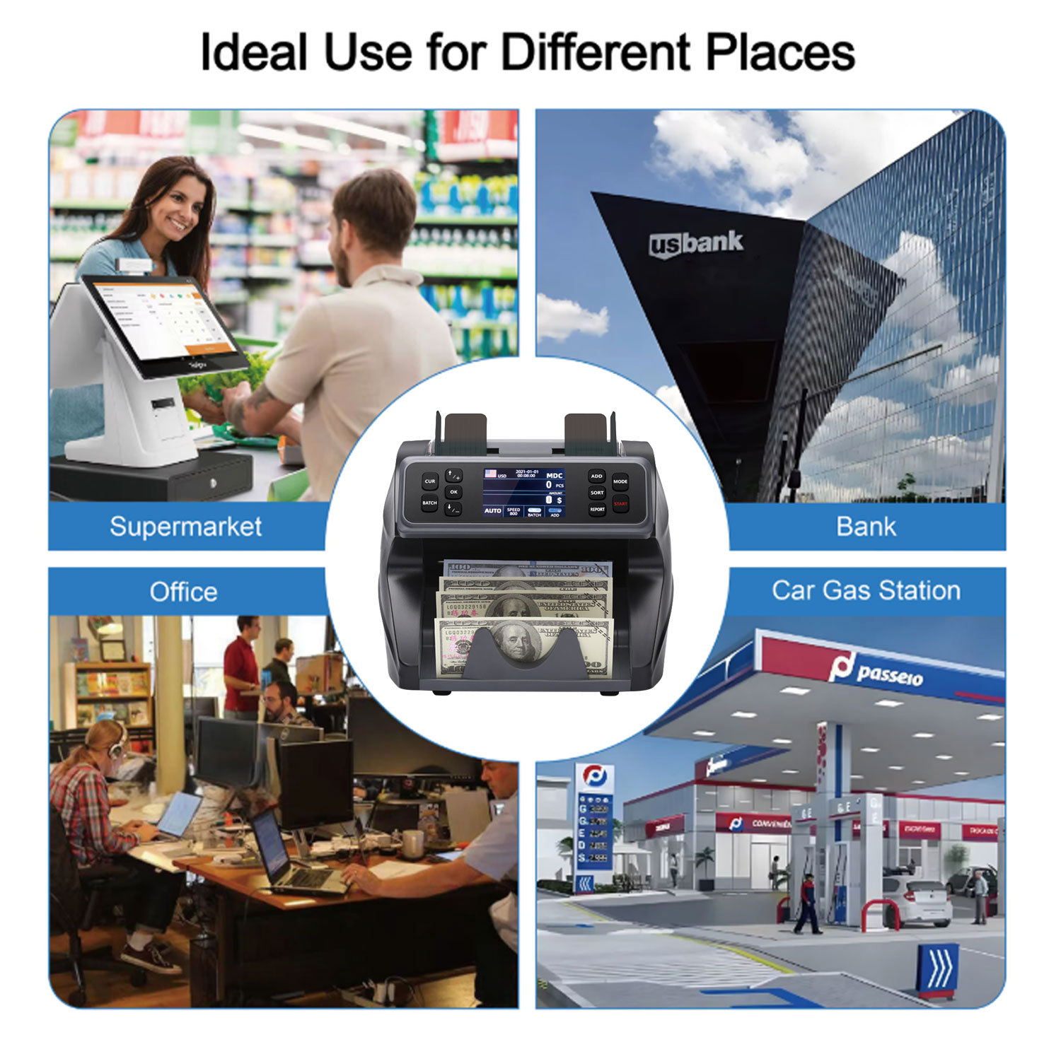 多通貨通貨紙幣検出器、デュアルCIS画像認識紙幣計数機、混合額面金額、半分分類機