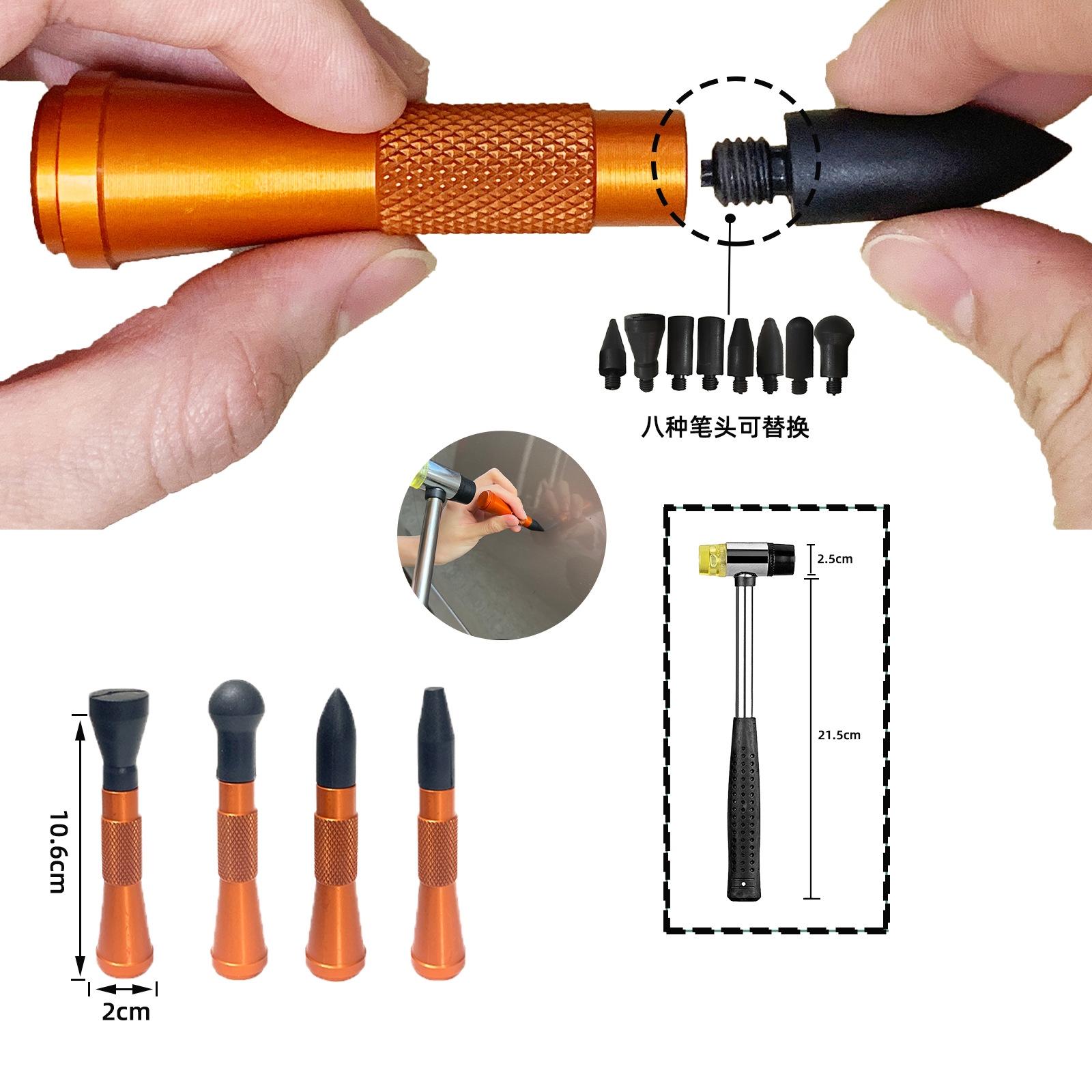 Knock Down Pen:There are various interchangeable pen heads for knock down pen,and different pen heads can be selected according to different dent.