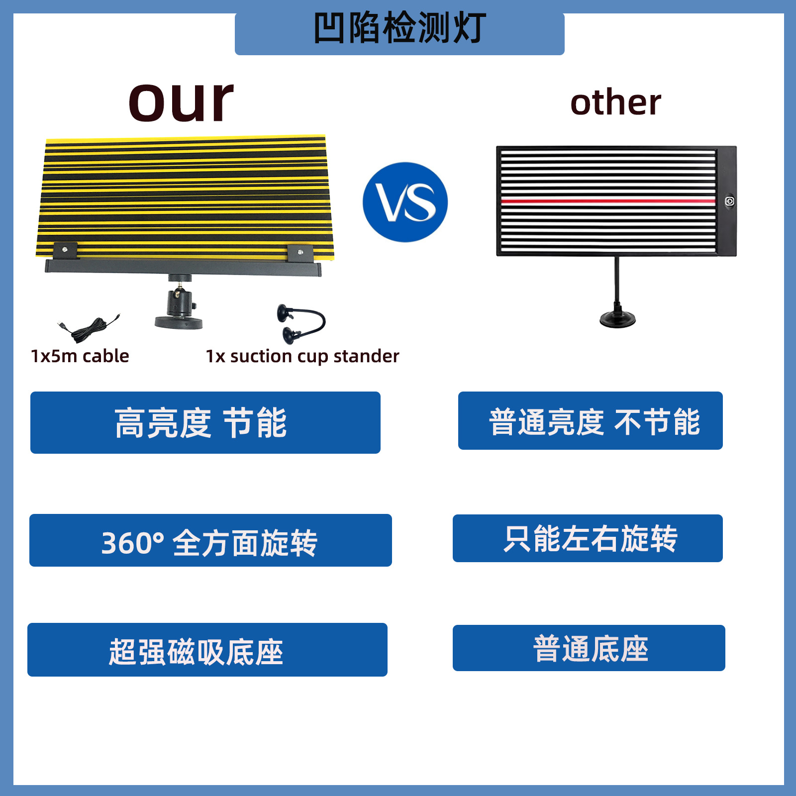 Dent Checking Light:Our dent checking light can detect dents both in the front and back.Compared to the ones on the market that can only rotate left and right,ours can rotate 360°.