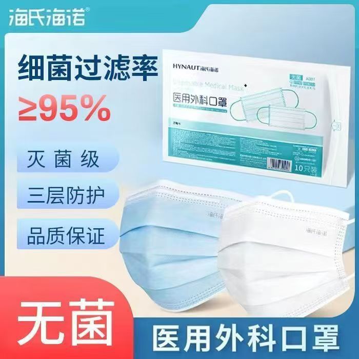 海氏海諾A087使い捨て医療用外科マスク (無菌) 10個/袋ブルーホワイト