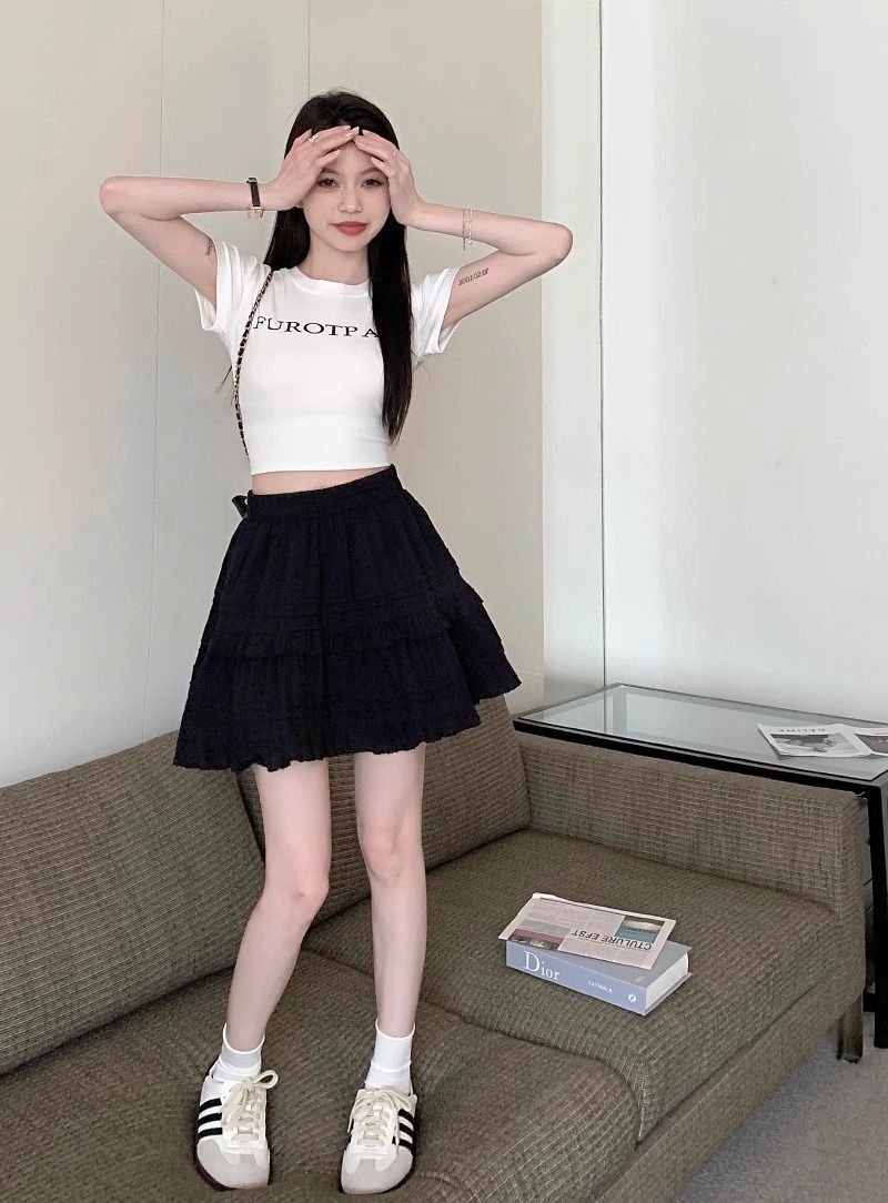 Y 2kギャルの黒い蓬蓬蓬のケーキのスカートの女性の秋の甘いクールな半スカートの高腰の愛のベルトのデニムの足のカバーのショートスカート