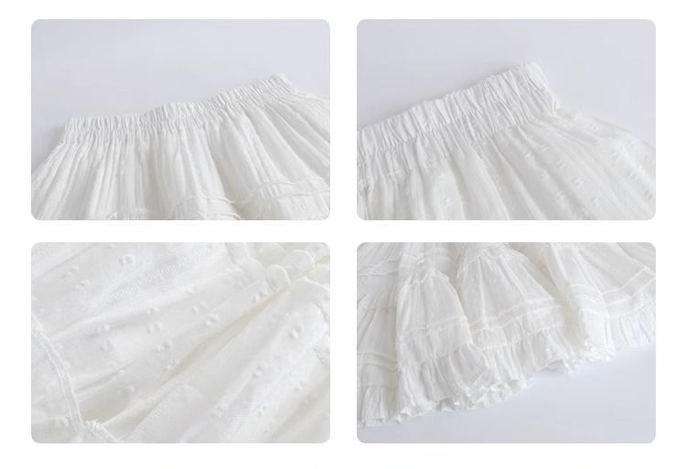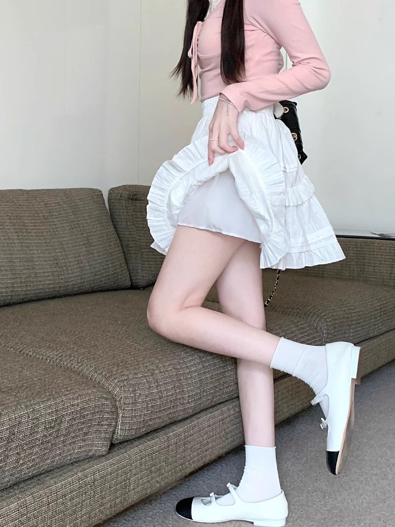 女性のための白いレースのショートスカート春、秋、夏 2025 新しいバレエスタイルのケーキスカートハイウエスト A ラインふわふわスカート