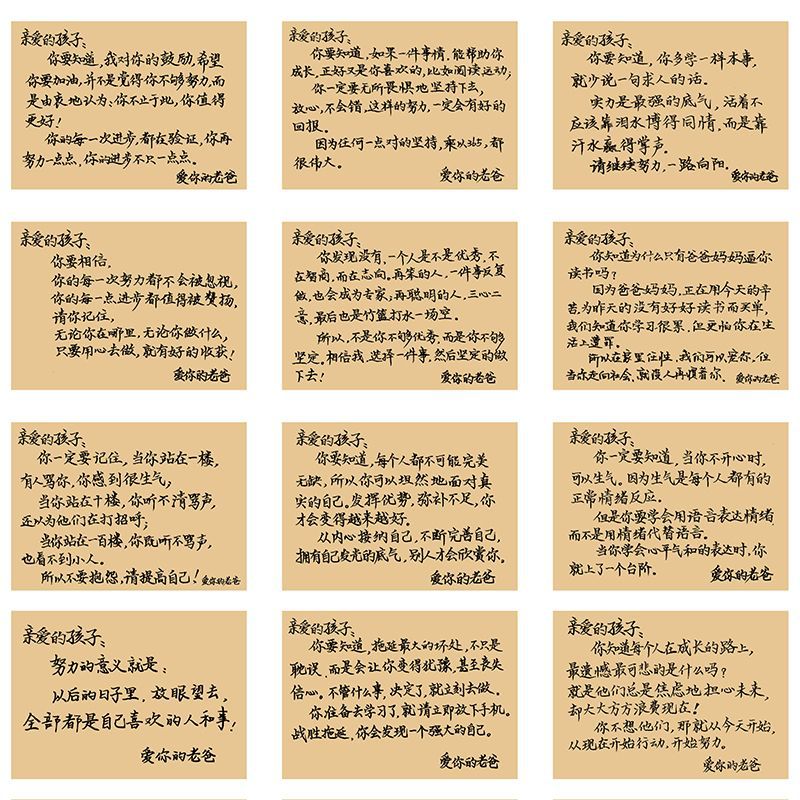 128枚のお父さんが子供に書いた毎日のメモは子供の成長を教育します。