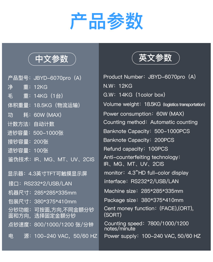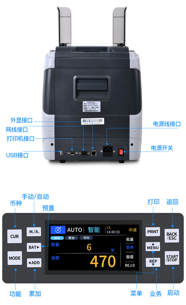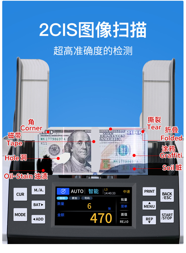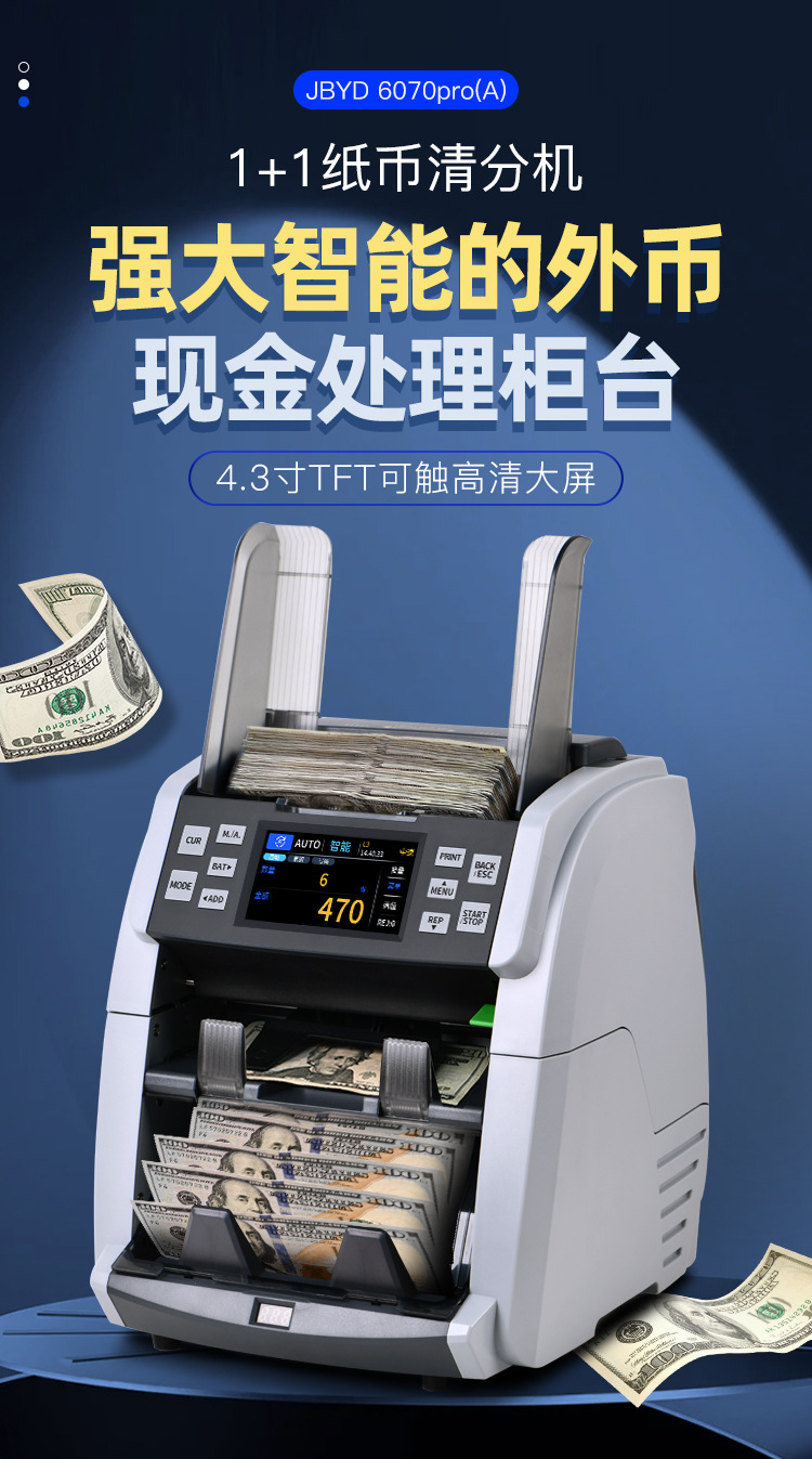 6070pro 外貨紙幣計数機 CIS画像認識 混合紙幣計数 縦型半自動分類機