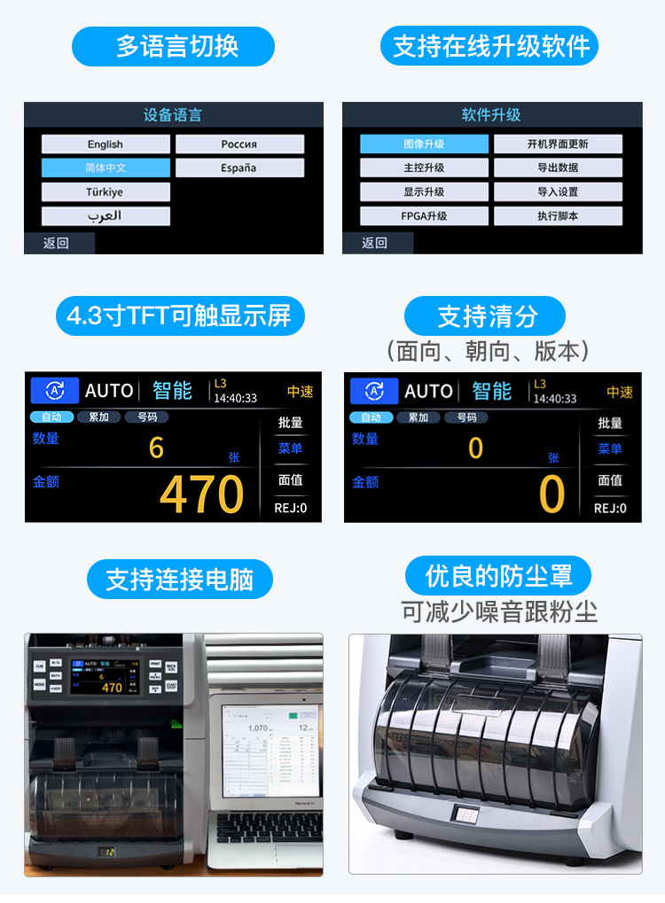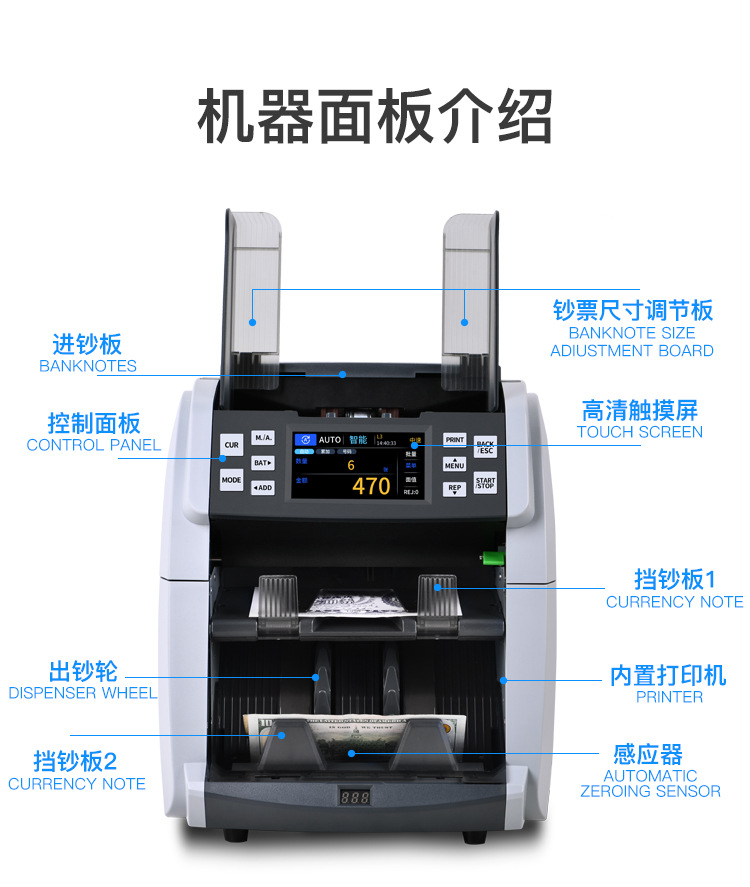 450Q外貨紙幣計数機全画面ハイエンド機多国籍通貨紙幣計数機サポート金額/バージョン等分紙幣