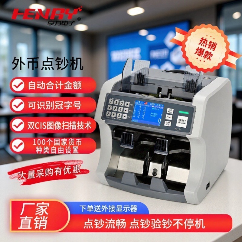 ヘンリーS200 2025新型紙幣計数機、多通貨対応紙幣計数機、偽札検知機、業務用混合紙幣計数機、合計金額計算機能付き