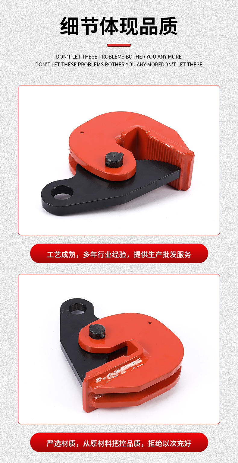 水平吊り鋼板クランプメーカー卸売水平吊り鋼板クランプスリングフリップクランプ鋼板リフティングクランプ