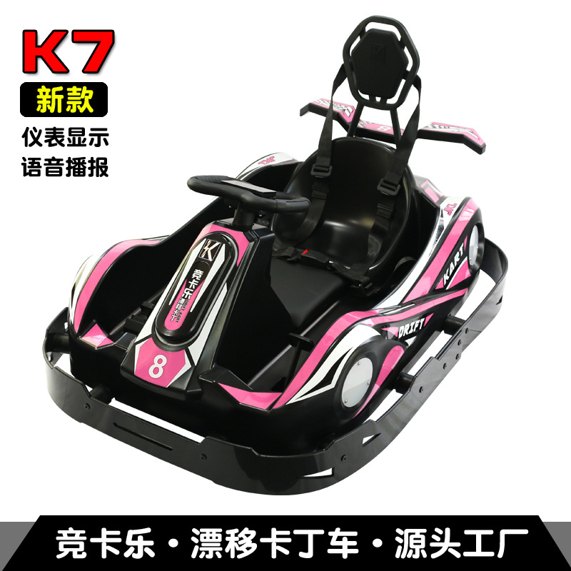 竞卡乐K7儿童电动卡丁车双人三轮漂移车碰碰车室内广场户外商用粉