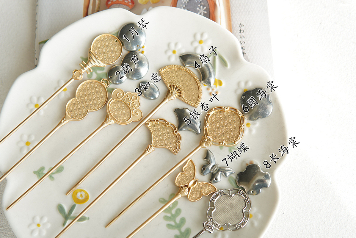 手工diy发簪底胚宋锦贴布发钗空托汉服珐琅点翠手工制作发饰配饰